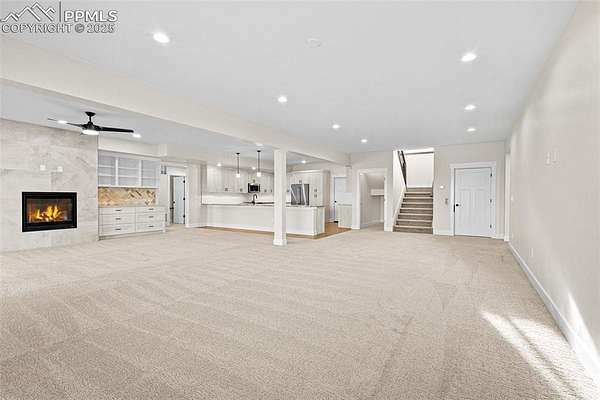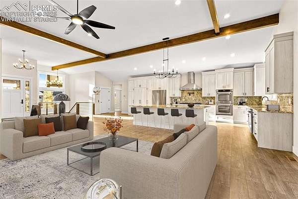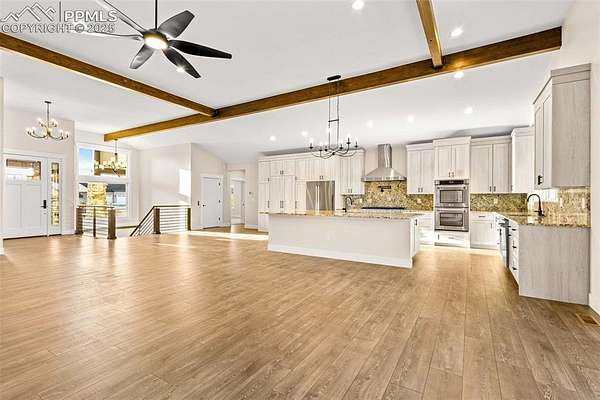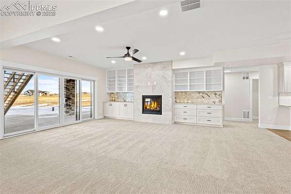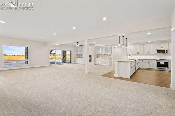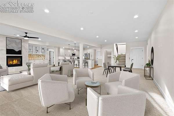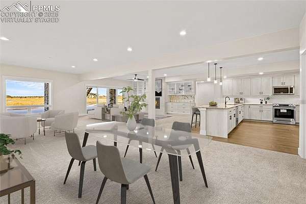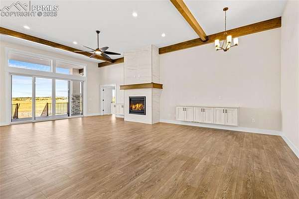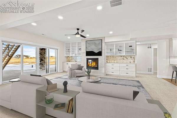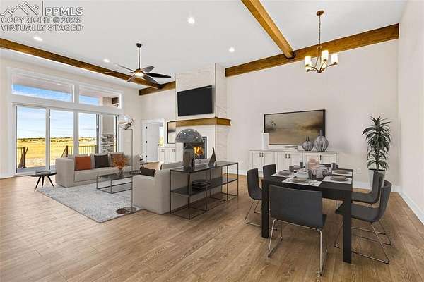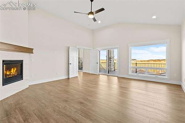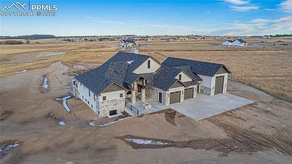 New construction. Never lived in. Discover your dream home in this exceptional ranch-style property that offers a lifestyle of luxury and convenience. A true gem, this home sits on an expansive 5.01 acres, tucked away on a quiet street. From this exclusive location, you'll enjoy breathtaking views of Pikes Peak, creating a picturesque backdrop for your daily life. As you step inside, you'll be welcomed by an expansive open floor plan. The grand room is a showstopper, complete with an elevator for ease of access, a cozy fireplace to gather around, and a hidden pantry that's both practical and discreet. The custom cabinets and elegant granite countertops in the kitchen add a touch of sophistication, while the walk-out deck, spanning an impressive 51 feet, invites you to soak in the serene outdoor views. The main level boasts three spacious bedrooms, each designed for comfort and style. The owner's retreat is a true sanctuary, featuring a fireplace as well as direct access to the deck. The primary bath is a spa-like haven, equipped with a luxurious spa shower, a freestanding tub, a heated towel rack, and double vanities for added convenience. A generous walk-in closet, complete with a built-in closet system, conveniently attaches to the main level laundry room, which features granite countertops, a sink, and space for a full-sized refrigerator. Venture into the walk-out basement adding another layer of convenience and charm to this exceptional home. The family room is a fantastic space for entertaining and relaxation, and it includes a full-sized kitchen for added convenience. A finished storage room doubles as a safe room, providing peace of mind. You'll also find three additional bedrooms, each with their own en-suite bathrooms, ensuring comfort and privacy for everyone. This home is the epitome of elegance and functionality, offering an extraordinary blend of luxury and practicality. Large outdoor entertaining spaces