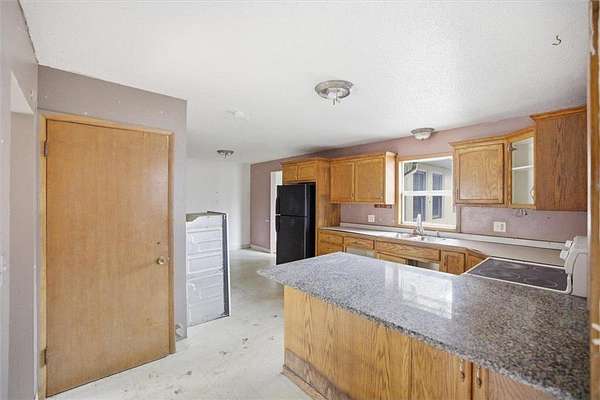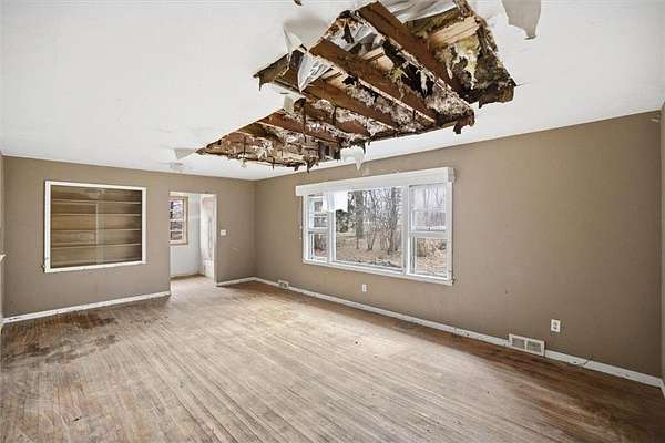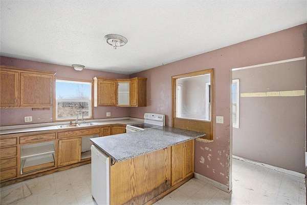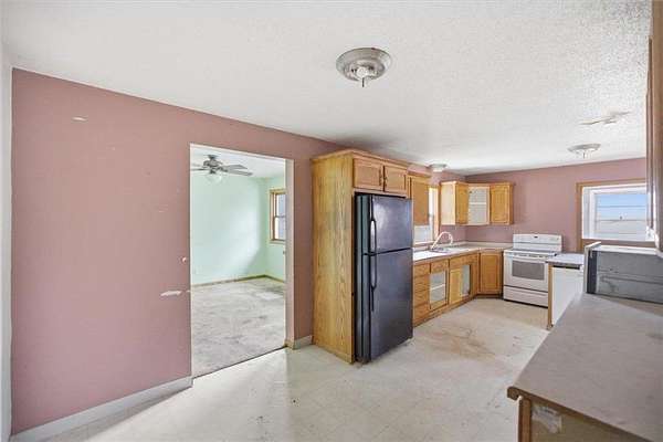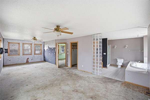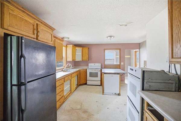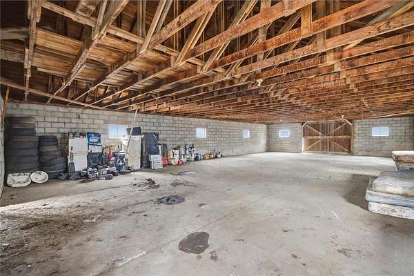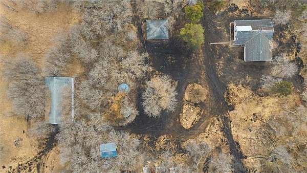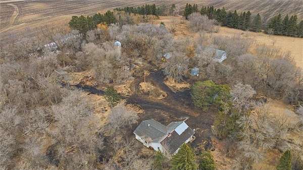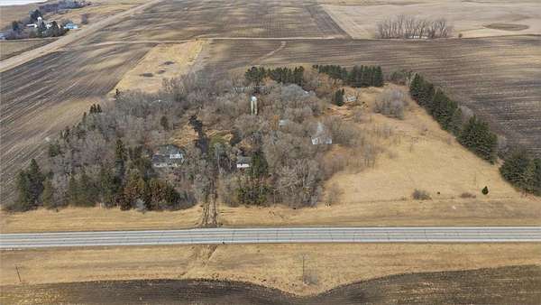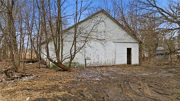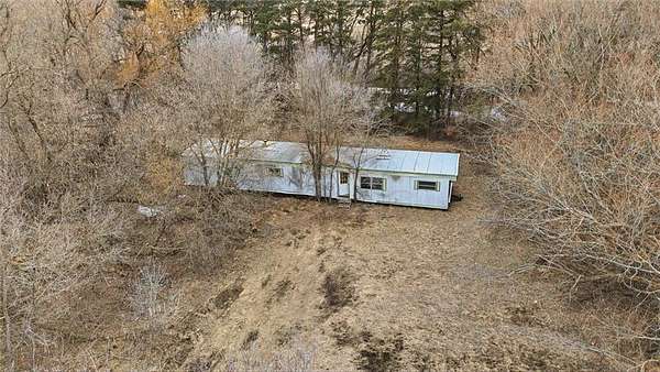 Est $539/moRural property offering 4 bedrooms and 3 bathrooms with approximately 1,700 finished square feet situated on 9+ acres. Features include a detached 2-car garage and multiple outbuildings including barn(s), storage sheds, and additional utility structures. Property offers a combination of open and wooded areas with direct access from a state highway location. Provides a flexible layout with main-level living space and additional bedrooms..