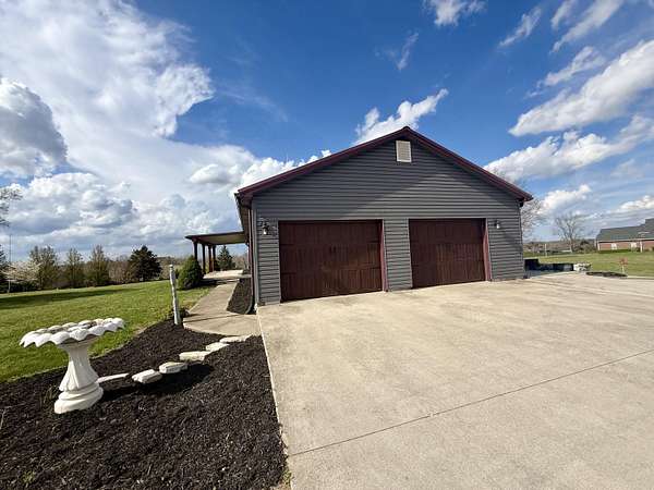 * Interior photos will be available tomorrow.* Welcome to your own slice of country paradise. This 3 bedroom, 2 bath home is perfectly set on 2.45 acres of peaceful, picturesque land. Perfectly blending country charm with everyday convenience. Step inside to a spacious, open-concept kitchen and living room that's perfect for everyday living and entertaining. The kitchen comes fully equipped with all appliances, butcher block cabinet and the kitchen table making it truly move in ready. The home also features good sized bedrooms, offering plenty of space for family, guest, or a home office, while the thoughtful layout keeps everything comfortable and functional. Outside, the level to gently rolling yard is filled with gorgeous trees, creating a serene and private setting. There's plenty of space for gardening , outdoor activities, bird watching, or enjoying morning coffee on the front porch. The charming little playhouse adds character and can be used as a quiet retreat, hobby space, or creative nook. A standout feature is the large detached building, offering endless possibilities. Whether you envision a workshop, storage for equipment and vehicles ,this versatile structure is built to accommodate a variety of needs. Its spacious interior and durable construction make it a practical and valuable addition to the property, giving you room to pursue hobbies, store belongings, or work on projects right at home. The home also includes an attached 2-car garage for convenience, and a storm shelter designed for safety and peace of mind. Included with the home: - Zero-turn lawn mower - Generator - All kitchen appliances - Washer & Dryer - Flat Screen TV - Kitchen Table - Butcher Block Cabinet