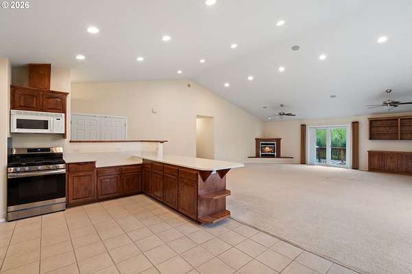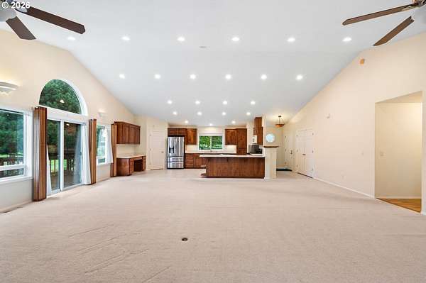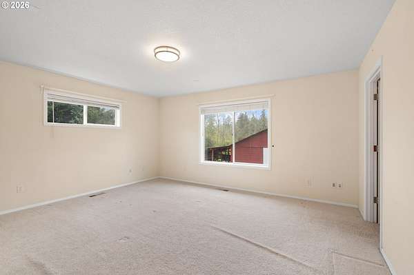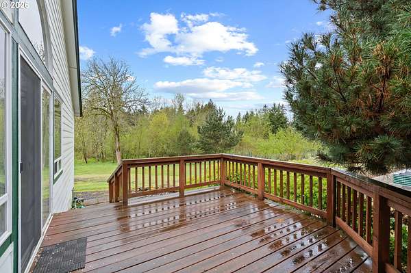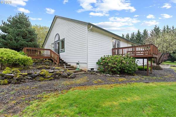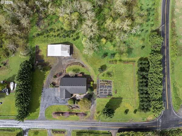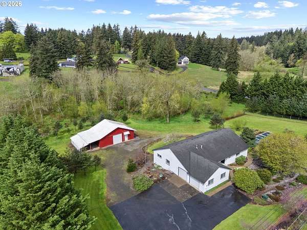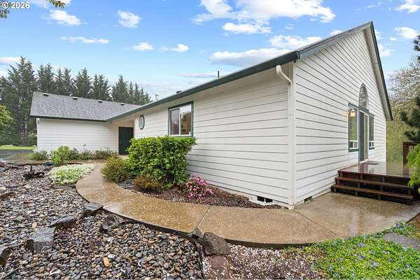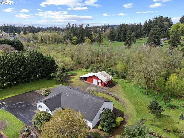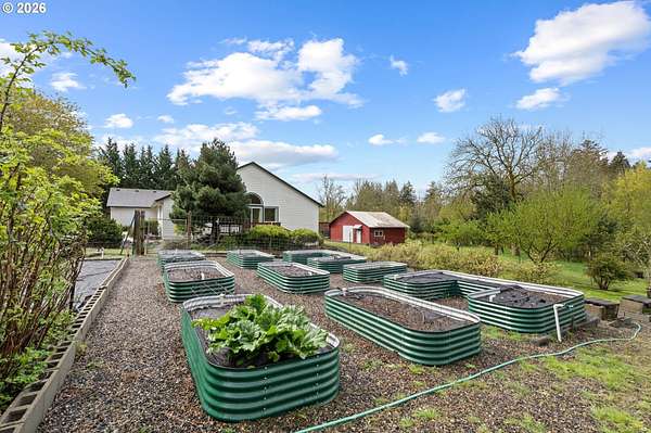 If you've been looking for space, privacy, and something a little special...this one hits different. Sitting on 3.91 acres, this property offers the best of both worlds - usable land up front, and a protected greenbelt with wetland behind, ensuring your peaceful, scenic backdrop stays just that.Built in 2004, this one-level home offers 3 bedrooms, 2 full baths, and 2,384 square feet of comfortable living space. The great room truly lives up to its name - massive vaulted ceilings, dual ceiling fans, recessed lighting, built-ins, a gas fireplace, and two sliders leading to separate deck access points create a space that's both impressive and incredibly livable.The kitchen features tile flooring, quartz countertops, a gas range, pullouts, and a pantry, all positioned to stay connected to the heart of the home. Bedroom #1 includes a built-in desk/workspace and walk-in closet. Bedroom #2 also offers a walk-in closet and beautiful views. The primary suite includes a walk-in closet and en-suite with double sinks and a jetted tub and a gorgeous view. The entire home is wired for speakers in every room. A dedicated laundry room with cabinets and sink adds everyday convenience.Outside is where this property really shines - expansive paved parking with room for RVs, boats, and all the toys. The iconic red barn, complete with its own electrical panel and loft storage, brings both charm and functionality. The fully fenced raised garden beds are incredible, complete with an impressive drip irrigation system. It supports a wide variety of established plantings including blueberries, hazelnuts, figs, grapes, raspberries, apples, and more.All of this just minutes from schools, shopping, and dining.Properties like this don't come around often - private, practical, and full of personality.