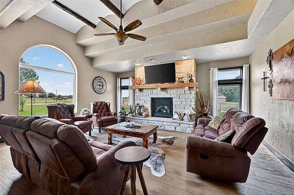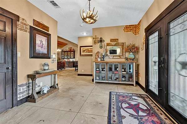 HERE IT IS! Turnkey horse property on approx. 38.34 acres located in Collinsville, TX, in the heart of Horse Country USA. This professionally maintained equestrian estate offers multiple homes, extensive horse facilities, and a private, functional layout ideal for any horse operation. The main home is 3,967 square feet and was fully remodeled six years ago, with additional updates in 2024 including new windows and roof. The residence includes 3 bedrooms, 3 full bathrooms, a half bath, an updated kitchen, spacious living areas, and a large backyard with pool, patio, and separate pool house with a full bath and living area. Horse facilities include a 70x120 covered riding arena, LARGE outdoor arena, and two barns offering a total of 24 stalls. The show barn features 14 stalls, 2 tack rooms, and an office. The mare barn offers 11 stalls with 5 turnouts. The property also includes a 38x60 shop, 12x38 hay storage, multiple paddocks, fenced and cross-fenced pastures, and ample trailer parking. Three ponds, gated entrances, and well-planned infrastructure make this a fully operational property. Additional living spaces include an updated apartment attached to the barn, and an optional tiny home that can be for purchase for expanded living or guest accommodations. This rare offering provides a complete setup for horses, ranch operations, and multi-generational or staff housing. Located in a peaceful and highly sought-after area with easy access to major equine facilities, this property is ready for immediate use and future expansion. Seller would split up and divide. See MLS # 21155487 for this property with 55.34 ac and another additional house.