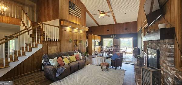 Charming Farmhouse on 14.16 Acres in Portal, Bulloch County Discover the perfect blend of rustic charm in this stunning 3-bedroom, 2.5-bathroom farmhouse, nestled on 14.16 acres of picturesque land. With a newer roof and HVAC, this home is move-in ready and built for comfort. Step inside to a welcoming two-story foyer with brick flooring that flows throughout the main level. The open-concept living, dining, and kitchen area boasts high ceilings and an extra-large wood-burning fireplace, complete with an exterior clean-out and wood storage with exterior door. Large windows throughout the home fill the space with natural light, creating a warm and inviting atmosphere. The primary suite on the main floor features a private sunroom, perfect for relaxing with your morning coffee. A second sunroom off the kitchen offers versatile space that can serve as a family room, office, or breakfast nook. The expansive laundry room/butler's pantry includes cabinets, a sink, and ample storage. Upstairs, you'll find two spacious bedrooms with large walk-in closets, a shared bath, extra walk in storage closet and a balcony overlooking the main living area. Fresh new carpet in all bedrooms and fresh paint throughout enhance the home's appeal. Enjoy peaceful mornings and evenings on the full-length front and back porches, perfect for taking in the stunning sunrise and sunset views. The fenced backyard provides space for pets and outdoor activities. For those seeking a country lifestyle, this property includes a barn with two stalls, a storage room, and a loft. The property has a well with a 1,000-gallon water tank, and the septic system was serviced in 2024. Located just minutes from local grocery stores and schools and only 15 minutes to Statesboro or Metter, this home offers the tranquility of country living with convenient access to town. Don't miss out on this rare opportunity-schedule your showing today! Seller is licensed GA Realtor