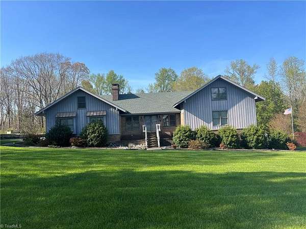 Welcome to 1717 Wallburg-High Point Rd, where refined country living meets everyday convenience just minutes from the 311 Bypass, shopping, and dining. This custom-built home is perfectly positioned on 2.04 private acres with a long circular drive and side-entry garage. A rare highlight is the impressive 36x64 detached garage featuring a floored attic, half bath, and full wiring—ideal for a home business, workshop, or car collection. Inside, you’ll find a spacious eat-in kitchen with solid surface countertops, walk-in pantry, and generous laundry room. The living room offers a brick fireplace with gas logs and custom built-ins, flowing into a bright sunroom retreat. The primary suite features a tile shower, double vanity, and custom shelving. Upstairs includes two bedrooms and 3.5 baths total. The full basement offers a stunning cedar-lined den plus additional kitchen and bath. Enjoy outdoor living with a patio and private putt-putt course. Home comes with a 1 year home warranty.