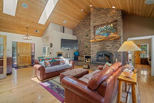 Escape to your own private retreat on nearly 15 acres of pure nature, recreation, and relaxation! This one-of-a-kind property offers something for everyone! Inside, you'll find 3 spacious bedrooms, office, plus a bonus room complete with a built-in wet bar~perfect for hosting! The great room features a stunning floor-to-ceiling wood-burning fireplace, hickory hardwood and slate flooring throughout. The kitchen is beautifully appointed with hickory cabinets, granite countertops, quality finishes and formal dining room. Step outside to your own outdoor oasis featuring a custom-built kitchen with BBQ, a relaxing hot tub surrounded by decking, stamped concrete patio, a 240-yard golf driving range, and a private trail that winds around the property. High-speed CAT 6 networking is already in place for all your modern needs. Located just minutes from Mt. Bachelor, the Deschutes River, and endless outdoor adventures, this property truly offers the best of Central Oregon living!