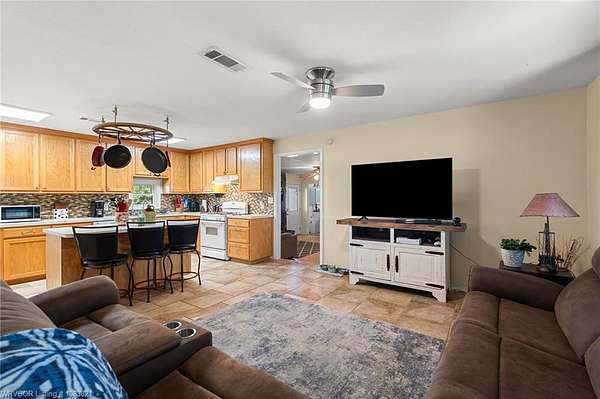 Charming and meticulously maintained, this classic home sits on a groomed 2.99 +/- acres and combines timeless character with functional living spaces. Featuring a metal roof, new exterior paint, and a large, covered carport, this home offers two spacious living areas, a rock fireplace, and a well-appointed kitchen with a pantry. The property includes a versatile shop building that could easily be converted into a game room, home office, or additional living quarters. For future expansion, a shop pad is ready, with utilities in place, including an extra power box with conduit, an additional septic tank, and a waterline, perfect for building a new shop or RV parking. A storage building with loft adds even more space for equipment or seasonal items. The expansive 2.99-acre yard offers privacy and room to enjoy the outdoors. Every detail reflects careful upkeep, making this home move-in ready while offering endless possibilities for customization and expansion. A rare combination of charm, versatility, and practicality, this property is ideal for those seeking both a beautiful home and functional acreage. Close to town and freeway access. Home has been pre-inspected.