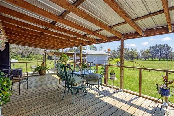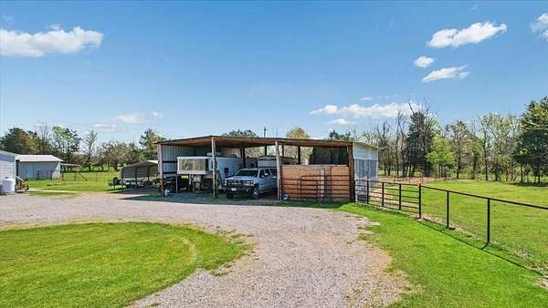 Set on 3.9 beautifully maintained acres just minutes from Bonham State Park and Bonham Lake, this fully fenced property offers the perfect blend of country living and convenience. Ideally located near shopping, dining, and medical facilities in Bonham, with an easy commute—approximately 45 minutes to McKinney and 35 minutes to Sherman. The tree-lined acreage provides privacy and a peaceful setting, ready for horses or livestock. A spacious 38' x 35' pole barn with 13' height offers ample room for trailers, RVs, and equipment, and includes horse-livestock stalls. Additional improvements include an 18' x 20' carport and a 24' x 14' storage building. Outdoor living shines with a 25' x 12' covered back porch deck—perfect for entertaining or relaxing while taking in scenic views—plus an additional covered concrete patio and a charming 10' x 10' paver patio. Inside, the home features generously sized rooms, a cozy propane fireplace (just added last year), and French doors that open wide to the back deck, creating seamless indoor-outdoor living and inviting in the fresh country breeze. Septic system only two years old!