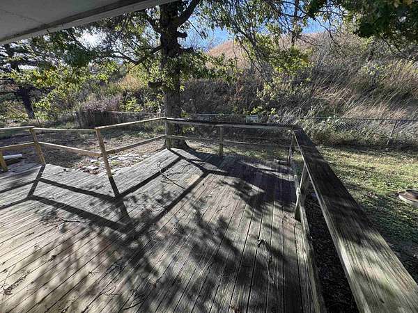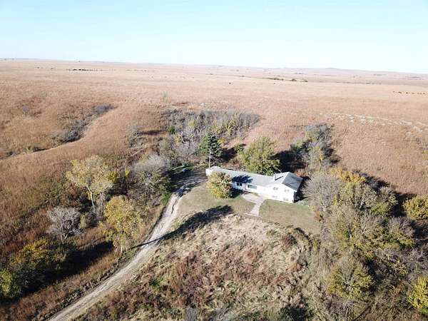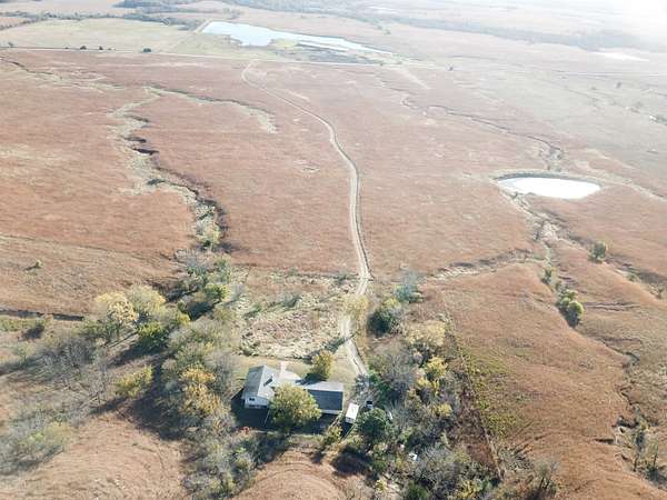 Situated on the east slope of the hill, this property offers seclusion and tranquility as you enjoy the breathtaking views of the expansive Flinthills surrounding the property! Sitting on 2 acres, this home features 2,748 sf of finished living space, 4 bedrooms and 3.5 bathrooms, an office, spacious living room, family room, 1,092 sf of unfinished basement, an attached garage and much more. This home is selling in it's "as is" current condition and will require some TLC but offers a tremendous amount of potential to make this home your own! As you enter the home, you are greeted by the large foyer which leads to the kitchen, living room, office, and master suite. The living room offers tremendous views out of the large picture window facing the east. The kitchen features lots of cabinets and drawers for plenty of storage space along with a tiled countertop and back splash. The door from the kitchen opens to the back deck, perfect for entertaining and grilling! A pantry, half bath, laundry area, and entrance from the attached garage are found in the hallway at the south end of the kitchen. The office on the main level offers lots of built in storage cabinets and display shelves. On the upper level of the split level part of the house, the master suite offers a spacious bedroom, two large closets, a built in desk, and large bathroom. Across the hall is a spare bedroom with 2 closets (one of which is cedar lined) as well as another full bathroom. As you enter the lower level you are greeted by the family room with a wood burning fireplace, two more bedrooms and another bathroom. From there, you can go down to the spacious unfinished basement that features a wet bar in the corner. This 2 acre property is accessed via a 30 ft. wide ingress/egress easement across the surrounding pasture. The home is selling with the plumbing, HVAC, and septic system in unknown condition. Water was supplied via Greenwood County Rural Water District #2. The water meter has been removed and the buyer will be required to apply for a new benefit unit. If approved, the cost of the new benefit unit will be approximately $2,500. This property is full of potential and with some TLC the possibilities are truly endless to turn this into your dream home, don't miss out call to schedule a tour!