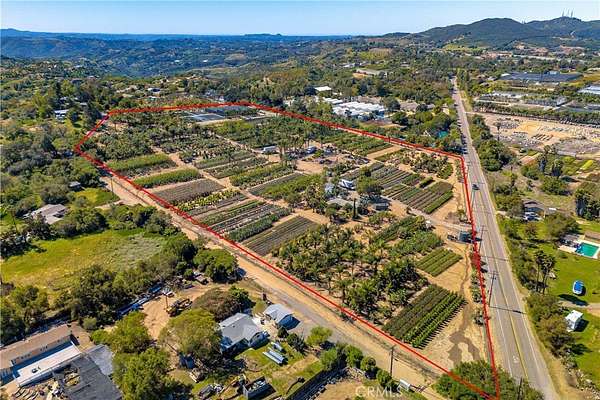 INVESTORS: <MAILBOX MONEY> Park your money HERE! Owner will lease back for up to 10 years. Super-successful Wholesale Nursery. Well managed, well-cared for, and no surprises. Your job as a BUYER will be to go to the mailbox and collect a check. ...............<OR>..............Build three homes on all three legal parcels and have a family compound with income too, <OR> construct three rental homes with "dual-income," <OR> Give the owner 18 months to vacate and plant something else of your choosing. This gorgeous all-useable property rises gently from the road and is not in the flood plain. It is fully fenced and double-gated on two roads. The on-site pumping system serves the entire property. There is an old 2 bedroom, 1 bath cottage built in 1935 that needs some serious renovation, but it is permitted. The onsite modern office modular is leased, and does not convey. Fallbrook enjoys some of the best weather in Southern California. The Sunset Western Garden Book designates Fallbrook as a "Mediterranean Climate.” This property is one-of-a-kind, and priced to sell. Financing Available. Perfect place to live or work............Live long. Live healthy. Live happy. BEST DEAL IN NORTH COUNTY!