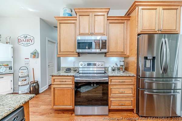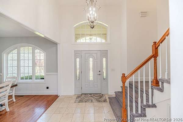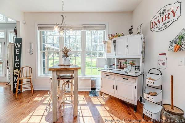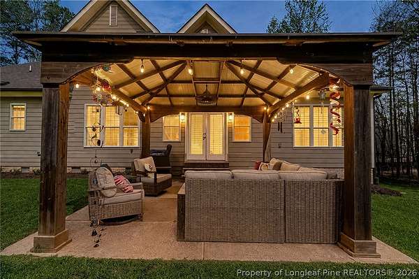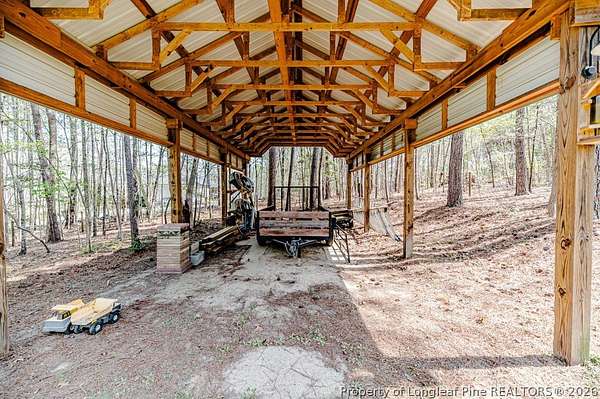 Custom built home on nearly 2 private acres offering luxury, privacy, and convenience just minutes to Raleigh and Southern Pines. This beautifully designed 4 bedroom home lives like a 5 bedroom with a spacious bonus room perfect for a guest suite, office, or flex space. Offering 2.5 baths, this home was thoughtfully crafted for both comfort and functionality. Inside, you will find an open layout filled with natural light and a seamless flow ideal for everyday living and entertaining. Every detail feels intentional, creating a warm and inviting atmosphere throughout. Step outside to enjoy a covered outdoor living area overlooking peaceful wooded surroundings. The fenced backyard offers space to relax, play, or entertain while maintaining privacy. This property also features a pole barn and an adorable house style shed, adding charm, storage, and versatility to the land. No HOA gives you the freedom to truly enjoy your property and make it your own. A rare opportunity to own a private retreat with space, flexibility, and timeless appeal.