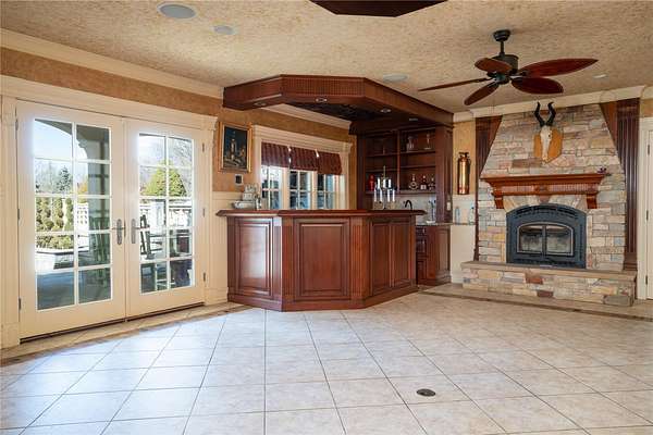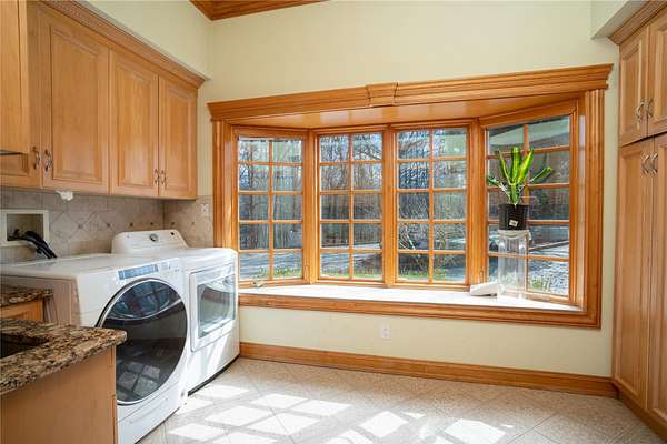 "CHATEAU AMOUR" - Where every sunset tells a love story... Need privacy? Look no further! Surrounded by Clausland Mountain's vast 532-acre nature preserve, this impeccably rebuilt 2007 custom estate at 172 Clausland Mountain Road blends wild beauty and refined luxury with 8,000 SF of finished living space. While you feel a world's apart in your own 5.5 acre sanctuary, it's hard to imagine you are only 30 minutes from NYC and less than 10 minutes to the majestic Hudson River and the river town villages of Nyack & Piermont, all within the award-winning South Orangetown School District. A gated tree-lined driveway welcomes you to a 17-room masterpiece featuring four ensuite bedrooms, seven bathrooms and six fireplaces for a warm, yet regal ambiance. The centerpiece is an expansive kitchen with a towering fireplace, high-end appliances and a 10-foot island, seamlessly extending to granite patios, royal gardens and a fully equipped outdoor chef's kitchen with fireplace, enclosed by Mediterranean-style balusters and secure gates. The grounds include a gated Bonsai garden and koi pond with cascading waterfalls that glimmer under the stars. For leisure and entertaining, enjoy the the panoramic nature views from bountiful patios, including a heated saltwater pool, outdoor fireplace and two hot tubs. If your own slice of heaven isn't enough, with plenty of room for vegetable gardens, vineyard vines, orchards, livestock, tennis court, and even a helicopter pad, bask in the wild through private trails into Clausland Mountain State Park, where endless exploration awaits. The entire setting is like living in a 360 degree perpetual mural that changes by the season; where your view shifts from fall foliage out of a Van Gogh painting, to a Monet winter wonderland. Abutting the property is a magical natural pond, the perfect backdrop for a picnic, swing or an ice skating haven in the winter. Inside, the list goes on and the house doesn't skip a beat, from first floor bedroom, wine cellar, butler's pantry, private office with extensive millwork, meditation room, smart home systems controlled by phone and a finished basement with theater and bar that leads directly to the lush grounds. The separate primary suite wing features vaulted ceilings, a fireplace, wet bar, walk-in closet and a balcony with private hot tub. If the house is too much to explore on foot, take advantage of the elevator which goes to every floor, warm your feet on the radiant heated floors and have the piece of mind your sports cars will enjoy the heated three-car garage. Minutes from the Hudson River and the charming villages of Piermont and Nyack, this property combines secluded living with everyday convenience. Whether you are looking to host or hideaway, 172 Clausland Mountain Road is where art, nature and architecture converge in romance...