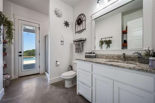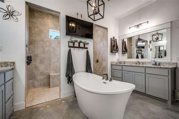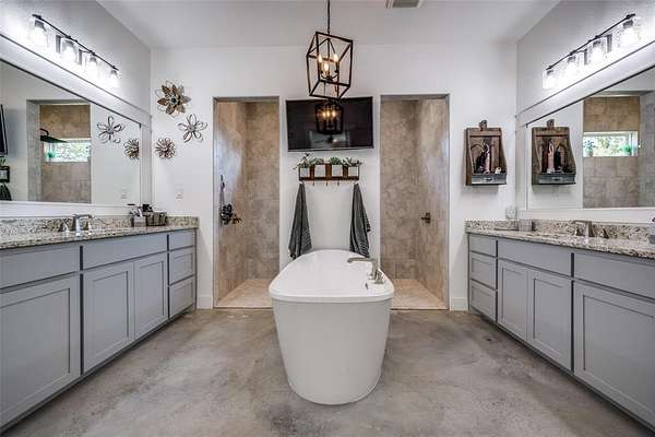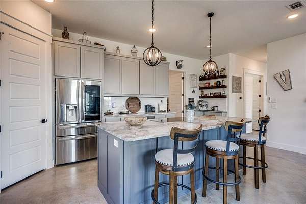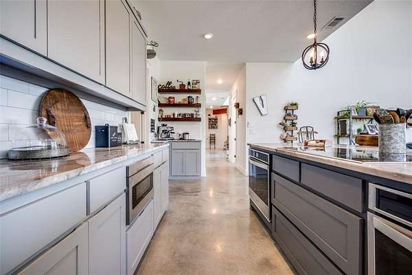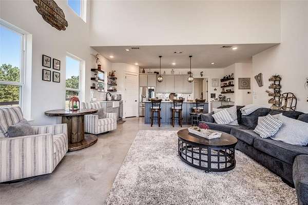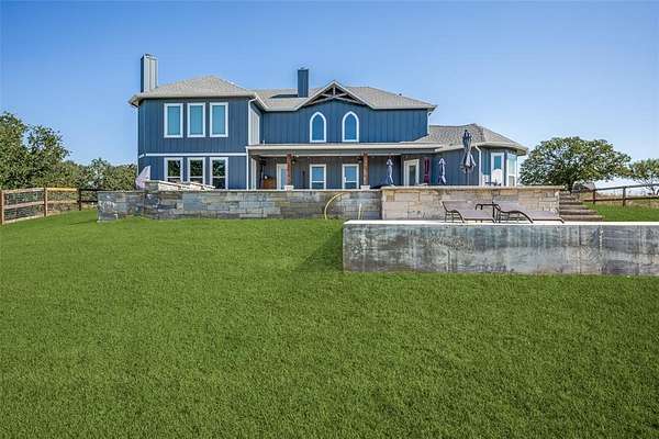 Welcome to this 2 acre lot in Grassland Estates, 6 bedroom estate in Decatur ISD. Light, airy, and impeccably crafted, this 2019 built Craftsman style home blends farmhouse warmth with modern sophistication. close to the city, yet serenely private with fresh air and open skies. This home showcases a custom pool built in 2023 with high end finishing for that resort style feel! From the foyer, abundant natural light highlights a cozy, versatile space with built in shelving and a stone fireplace, ideal as a library or dining room. The main level includes a two bedrooms with a walk in closet and a private primary suite with a luxurious bath and walk out to the pool. The expansive family room flows into the kitchen, which features a large island, farmhouse sink, floating shelves, a generous pantry, and double ovens. A convenient pet shower in the utility room adds practicality. The first floor is equipped with a full bathroom with a door to the back patio and pool. Upstairs there are three additional bedrooms with walk in closets and a full bath. This home is equipped with a large media room perfect for relaxing or entertaining guests. There is roughly a 300 sq ft surprise room (not included in the stated square footage) awaits customization that's ready for a gym, playroom, studio, or extra living space. Outdoor living is abundant with a fenced backyard, oversized covered porch, and a firepit, all in an energy-efficient design with numerous updates throughout. Come check out this country estate with amazing views and great neighborhood!