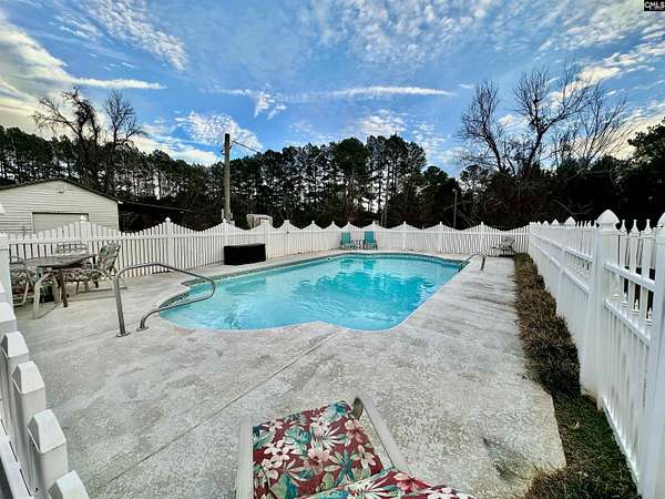 Welcome home to this beautifully maintained 1,380 sq ft ranch-style retreat set on 5.96 acres of fully fenced land, offering the perfect blend of comfort, privacy, and outdoor living.Step inside to an open living room featuring a soaring cathedral ceiling and hardwood floors throughout the main living areas. The home includes three comfortable bedrooms with carpet, and two tiled bathrooms with heated floors in the master bath. A two-car garage adds convenience and storage, in addition to the attic which is large enough to accommodate another room.Outside is where this property truly shines. Enjoy your own in-ground pool surrounded by vinyl fencing for added security. This outdoor space is perfect for entertaining or relaxing in peace. A hot tub off the back patio, covered with charming pergolas, creates a private oasis year-round.The property also features a large workshop with a full bathroom, playhouse, and a fenced-in pasture in the back--ideal for hobbies, animals - perfect for equestrians - or simply enjoying wide-open space.This rare combination of acreage, amenities, and comfort makes this a standout property with endless possibilities to transform into your own dream property.Buyers to verify all information pertinent to them such as but not limited to sq ft, acreage, utilities, ect.... Disclaimer: CMLS has not reviewed and, therefore, does not endorse vendors who may appear in listings.