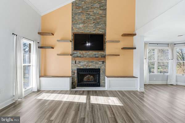 Beautiful Cape Cod home in the sought-after Hidden Meadows neighborhood! Featuring crown molding throughout, double closets in every bedroom, a Jack & Jill bathroom, and a master suite with a walk-in closet. The downstairs full bathroom includes a gorgeous soaking tub, and the living room fireplace is enhanced with built-in shelving. The kitchen offers a walk-in pantry for ample storage. Enjoy entertaining and relaxing on the walk-out deck overlooking the fenced backyard with an above-ground pool, while taking in peaceful woods views with deer often visiting. The property allows for keeping chickens, adding to its country charm. Additional highlights include a full linen closet in the hallway, a 2-car garage, and a new water pressure tank. This home combines functional family living with serene, quiet surroundings.