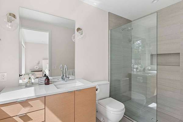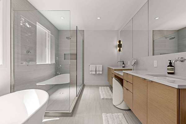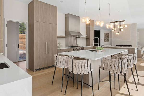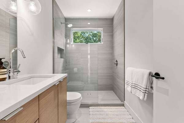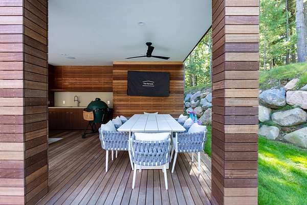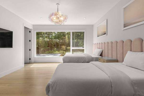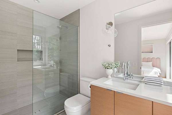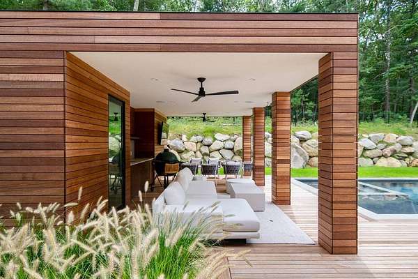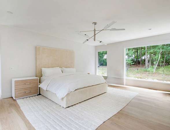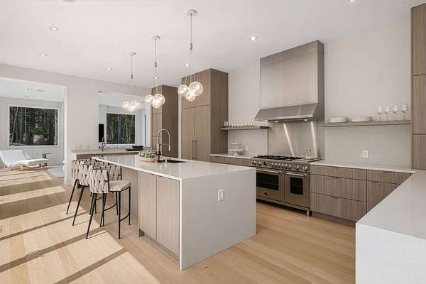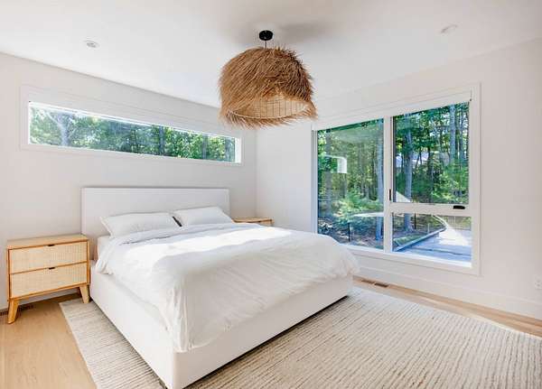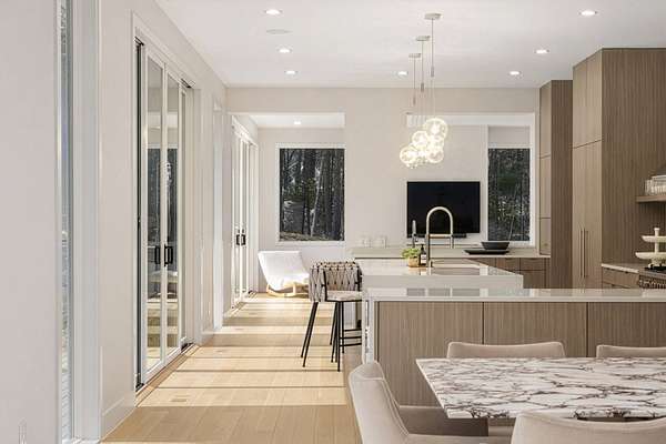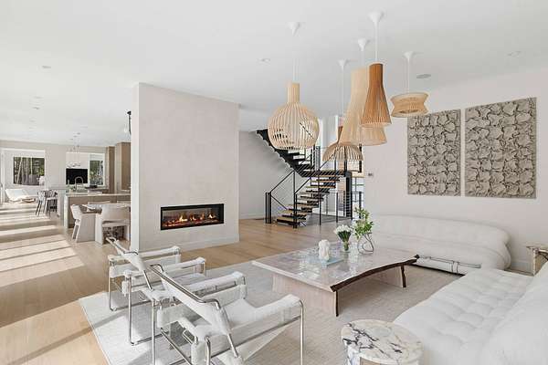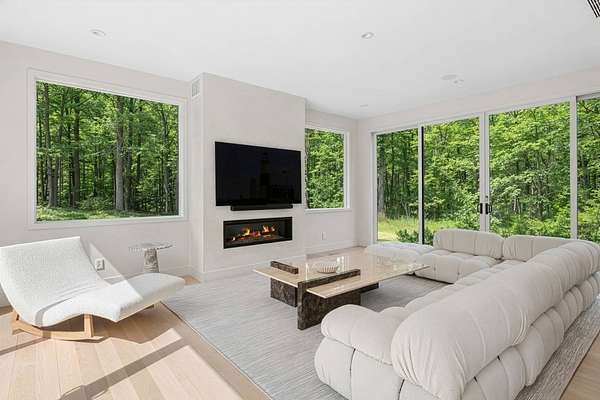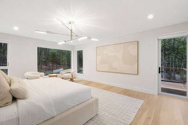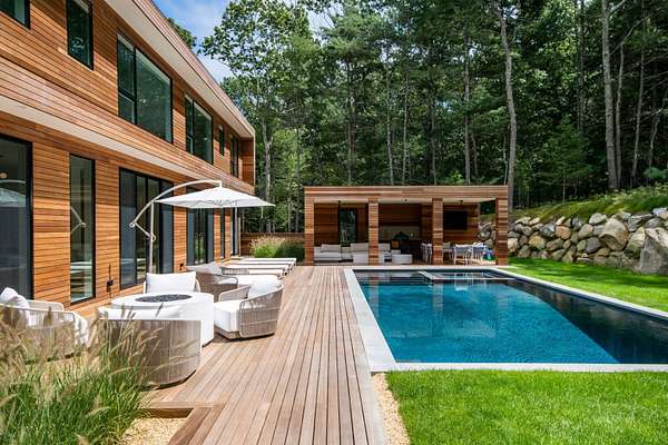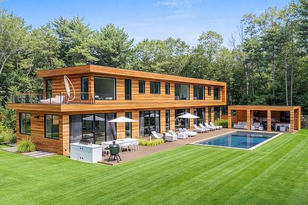 Luxury, sustainability, and elegance are yours in this 7400 +/- sq ft modern residence tucked away on nearly 3 acres of serenity. Cutting edge design by Modern NetZero capitalize on the cascading natural light, expanding the connection between the open floor plan and the outdoors. A dramatic entry with custom, floating steel staircase welcomes you to the chic living area accented with a double sided fireplace adjoining the dining room. The gourmet, eat-in kitchen with walk in pantry leads to a sun room with gas fireplace. The main level features a junior primary suite and a second en suite bedroom. Slide open the glass doors to an entertaining and lounging oasis with saltwater pool, spa, outdoor shower, half bath and room for tennis. The second floor showcases the primary suite with its mahogany terrace and spa-like bathroom. The lower level offers a large media room, full gym, and three additional bedroom suites. Form, function, and fun follow the sun right here, just a skip away from both East Hampton and Sag Harbor villages. A long list of amenities elevate this home above the rest- call to schedule a showing today to learn more.