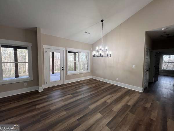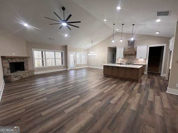 4BR, 3BA, HIGH SPEED Internet, & NO HOA! Spacious Open Ranch with Mountain Views Discover this beautifully designed open-concept ranch home, perfectly situated on a gentle, wooded homesite with nearby ridgetop mountain views-offering the perfect blend of privacy and convenience near town with a true country feel. Finished with a warm, woodsy exterior color palette, this home complements its natural surroundings while delivering modern comfort and style. Inside, vaulted ceilings and an open layout create a light-filled, spacious atmosphere. The home offers 4 bedrooms and 3 full baths, along with a separate dining room ideal for entertaining. The stunning kitchen features a large island, oversized pantry, and modern finishes, flowing seamlessly into the main living area highlighted by a beautiful stone fireplace. Durable LVT flooring and tile run throughout the home, combining style with easy maintenance. The owner's suite is a true retreat, featuring a walk-in tile shower, sprawling master closet, and spa-like design. Abundant closet space throughout the home provides exceptional storage, along with an unfinished bonus room offering endless future potential. Outdoor living shines with an oversized covered back patio overlooking the peaceful wooded setting. Additional features include a wood-look garage door, private well, and high-speed Trailwave internet-perfect for remote work or streaming. Enjoy modern living surrounded by nature, all while being conveniently close to town. This open ranch-style home offers highly desirable features including single-level living, open floor plan, vaulted ceilings, luxury vinyl plank flooring, tile bathrooms, stone fireplace, large kitchen island, walk-in pantry, and covered outdoor living space. Ideal for buyers searching for a modern mountain home, new construction, wooded lot, private well, high-speed internet, and homes near town with a rural feel. Located in a peaceful setting with mountain views, this property is perfect for full-time living, second home, or work-from-home lifestyles, combining modern finishes, storage space, and scenic privacy.