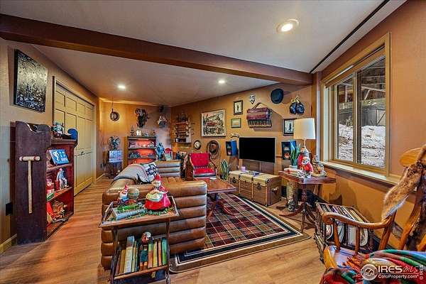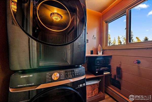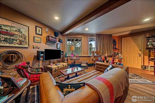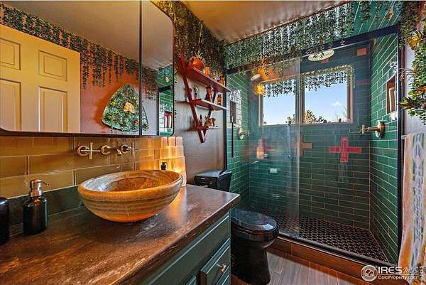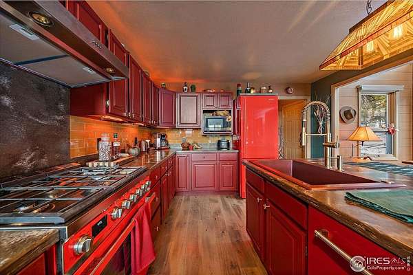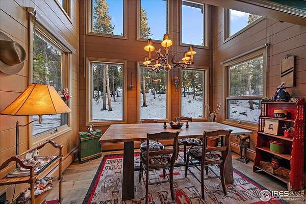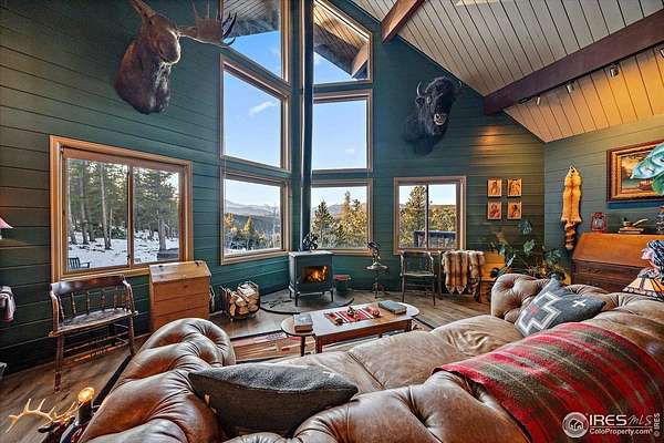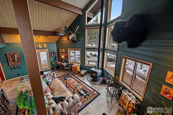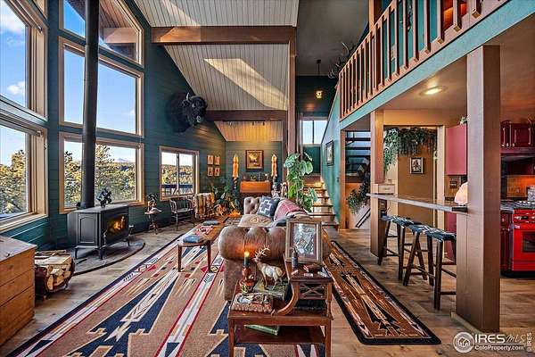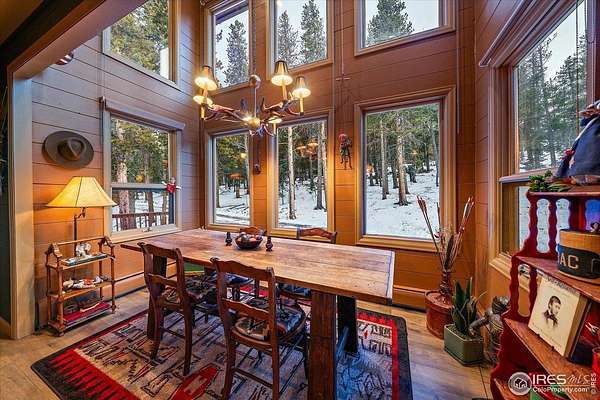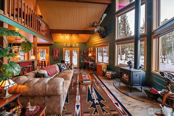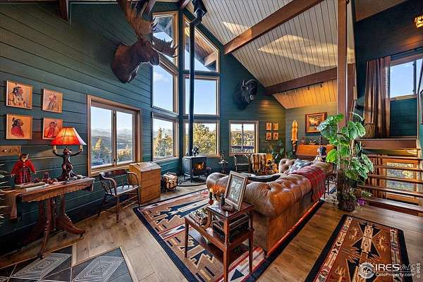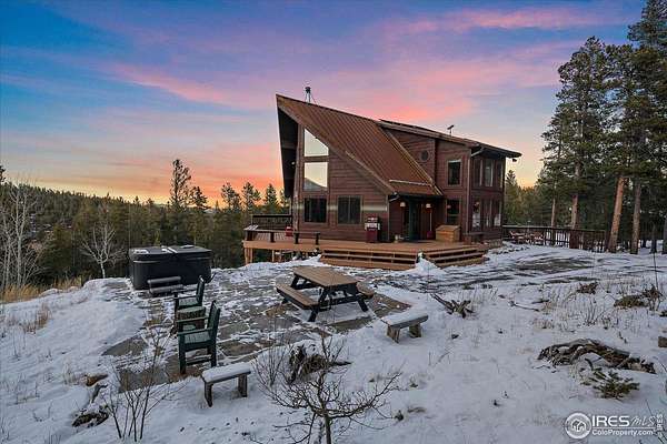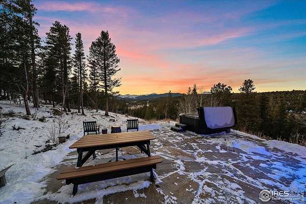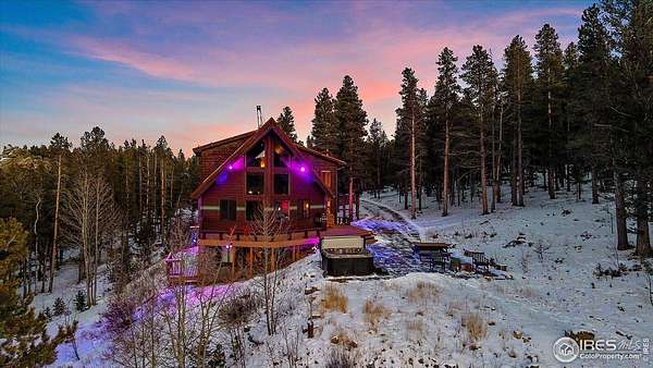 If you are looking for a PRIVATE, LUXURY MOUNTAIN RETREAT WITH FULL PANORAMIC MOUNTAIN VIEWS 25+ minutes from Boulder, Estes Park, and Eldora skiing, you have found it. This unique, enchanted ~5 acre property borders both Roosevelt National Forest and the Ceran St. Vrain Trail and has been lovingly restored with curated touches, giving it the feel of a vintage mountain lodge with high-end modern conveniences. Restore yourself under vaulted ceilings while you nestle in front of the cozy wood stove and gaze out over the snow-capped range through the full-size picture windows. Slip out onto the spacious stone patio, lounge on the deck and immerse yourself in the hot tub while you soak in the moonlit mountains. Move into the updated gourmet kitchen crowned with all new high-end appliances, new flooring and composite counters -- all centered by a large island with room for guests. All 3 bathrooms have been beautifully updated to be in harmony with nature to promote a sense of healing and well-being. You will be delighted by the "underwater" installation in the upstairs spa bathroom-complete with a modern standalone deep tub amidst the glowing ocean habitat. Primary bedroom is on the main floor, as are the washer/dryer. In the evening, the whole property radiates with magical variable lighting touches, both inside and out. Upstairs loft is roomy with more mountain views, and functions as a 3rd bedroom or office. The house also has a convenient attached 1-car garage with a decked out workshop. Property includes a detached 2-bay garage, woodshed and bench vistas. Solar is fully owned. The property is accessed through the coveted Bar-K Ranch subdivision, through which the buyer may optionally access 3 fishing lakes, stables, community garden, and hiking trails for minimal dues. Property is mitigated and Wildfire Partners Certified. If you like what you see in the photos, you will love how it feels in person.