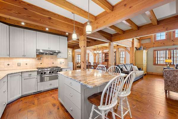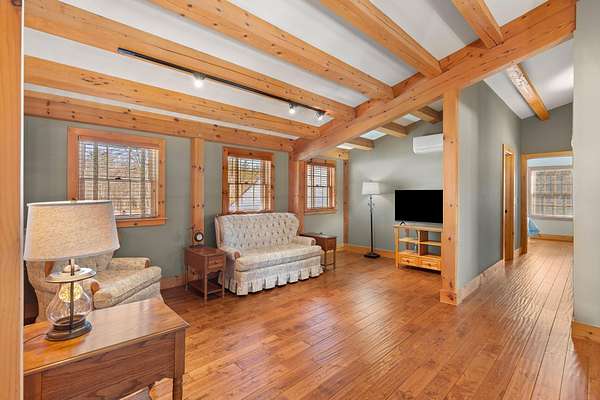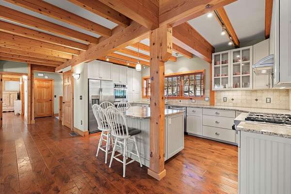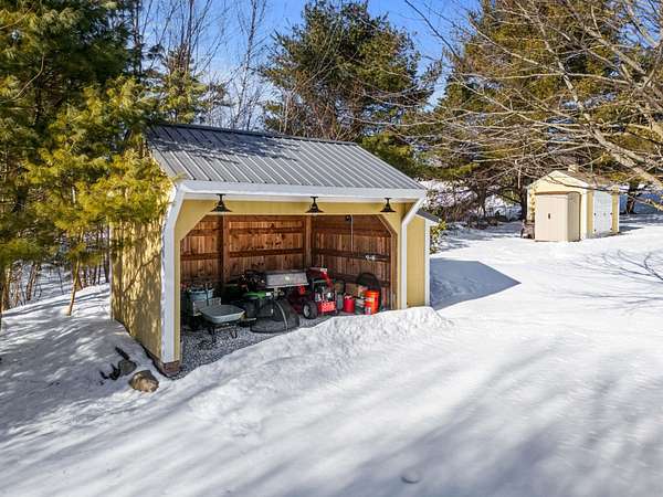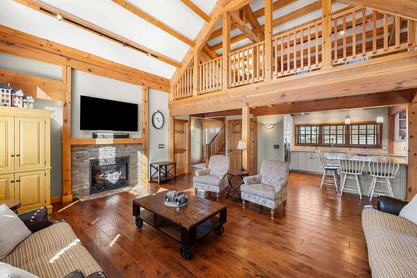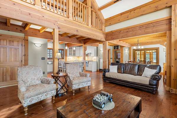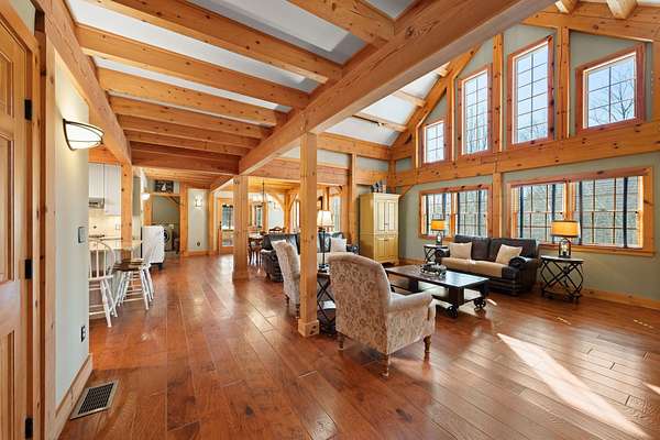 When the quality of construction matters, there is nothing better than a timber frame home. This immaculate 3-bedroom, 3-bathroom home with more than 4200sqft and four-car storage sits perched toward the front of a five-acre lot on a picturesque country road in Deerfield, offering maximum privacy for backyard gatherings. Upon entering, you're welcomed by the warm, caramel tones of the exposed beams that flow throughout and are counterbalanced by the darker chocolate tones of the 7" hickory floor boards, and the sunlight floods this home from the oversized Anderson windows. Inside, you'll find attention to detail in design and function with quality features like custom cabinetry throughout with granite countertops, stainless steel appliances, an expansive first-floor primary suite, a gorgeous sunroom, a first-floor laundry, multiple mini-splits for heating and cooling, central air, a hot tub room, and a pellet stove in the lower-level walkout. The sellers even had the foresight to add extra height to the lower level for future expansion, so whether you'd like an in-home gym, workshop, or even an in-law suite, you're good to go, and it's even been pre-plumbed for a three-quarter bath. These sellers have also gone to great lengths to make the backyard their own oasis, installing an 18' patio with 3' fire pit, a koi pond, raised garden beds, 75 producing blueberry bushes, there's also a shed, a second potting shed, a 3rd clear span shed perfect for driving multiple tractors in and out of, and there's a Kohler 20W whole house generator too. If you're looking for a game room or in-home theater, the 850+sqft space over the garage is ready for all your ideas. For those interested, high school options include Pembroke Academy, Coe-Brown Northwood Academy, and Concord High School. Showings to start during the open house on Saturday, March 7th, from 11am -1pm.