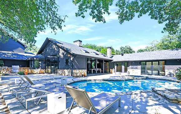 This 5+ acre wooded estate is a haven of rest & retreat! Minutes to DFW Airport, Argyle ISD. Designed to enjoy nature with soaring walls of steel windows & exterior-swing doors that bring the feel of outdoors in! Superior architecture & floorplan combines leisure & functionality. Located in Denton Co. in an ETJ in the city of Bartonville, no city taxes, no HOA and offers extraordinary uses with 6 multi-use living & dining spaces, lg. commercial kitchen, 7 !suites with en-suite baths. Owner's suite has private living space, office, sauna, fireplace & a private entry & view to the resort style setting & wooded forest backdrop with swimming pool-spa, outdoor shower, picnic areas, outdoor kitchen, multiple patios & pavilion style areas, guest quarters and a HVAC gym-sized area with epoxy floor - ideal for a health fitness area, event area or show-garage complete with EV connection. Property has been redesigned & completely renovated for today's family, in-home on-site business owners, in-home education, and multi-generational living. If you're looking for a floor plan that offer flexible use of spaces, IDEAL for entertaining, in a setting that offer peace and tranquility yet minutes from the acclaimed Argyle ISD, private schools, shopping, and dining, you must see this incredible home and property!