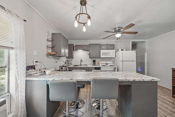 - Breakfast Bar, Dryer Connection-Electric, Kit Counter-Formica, Walk-In Shower, Washer Connection, Water Heater-Electric