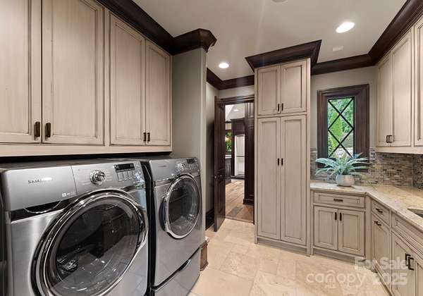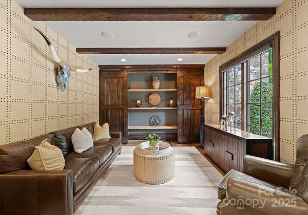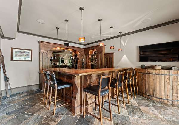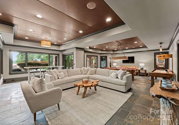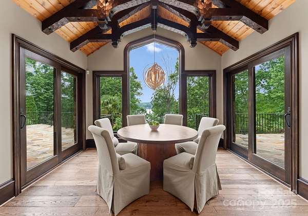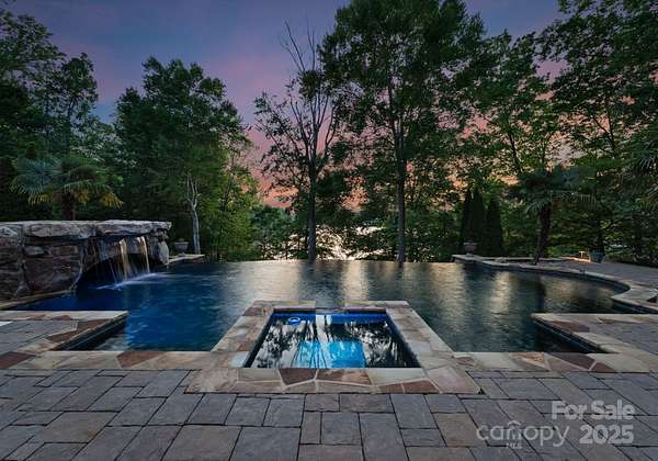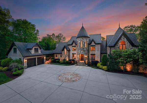 Home to NASCAR champion Martin Truex Jr., this private European-style estate on Lake Norman offers over 14,000 sq ft of luxury living on almost 5 gated, waterfront acres. A tree-lined drive leads to a stunning main house, carriage house with guest apartment, and expansive workshop/garage. The main home features a grand living room with soaring ceilings and lake views, a chef's kitchen, formal dining, and a main-level primary suite with a spa bath and 2-story closet. Upstairs offers en-suite guest rooms and a second office with a loft. The finished basement includes a custom bar, theater, gym, and game area. Outside, enjoy a resort-style infinity pool, waterfall, fire pit, and private dock with boat lift. A detached garage with finished space above adds even more flexibility. This home is perfect for a car enthusiast, with ample amount of garage spaces and workshop. An entertainer's dream and rare waterfront offering-experience luxury lake living with a championship pedigree.