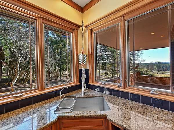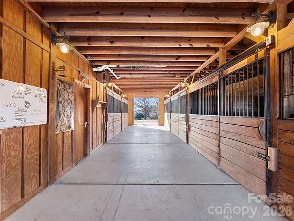 You will find that nothing compares to the architecture, amenities, and privacy that come with this property! (Be sure to watch the video). Live in luxury in the magnificent Prairie-style estate home situated on 42+ pastoral acres adorned with beautifully fenced pastures, barns, ponds and viewscapes. The unique two-level residence is a manor house ideal for generational living, a secluded retreat, or a turnkey equestrian facility. The home was built to take full advantage of the natural setting, with zen pathways, a natural stone pool, jacuzzi, koi pond, and patios. The residence features a dramatic great room with 17-foot ceilings and a stunning stone fireplace, leading to an open air atrium garden. The chef's kitchen includes a Sub-Zero fridge, Wolf range with artisan backsplash, abundant storage, and a bright breakfast nook with panoramic views. Entertain in style in the formal dining room or go casual with seating in the fully equipped outdoor kitchen. Primary suite and two additional bedrooms as well as the sunroom add to the easy flow on the main level. The finished lower level offers a second complete living space with full kitchen, wine cellar, guest suite, office with Murphy bed (although technically not a 5th bedroom), home gym, and a complete full size theater. The equestrian amenities are picture perfect ready for horses, llamas, alpacas or sheep. Two barns have 12 stalls, 2 tack rooms, multiple fenced fields and paddocks with watering systems, an indoor arena, and a large equipment barn. Additionally, there is a 5 car garage as well as temperature controlled dog kennel to add to the many amenities this home has to offer. For a grand tour of the property, click on the video link, which brings you from the opening of the custom gates into this enchanted world of exclusivity for those wishing to have the best of all worlds--an oasis where one can be in touch with nature and the animals you love. The estate is located near the vacation spot of Baden Lake and the venerable Old North State Club, and you have easy access to Charlotte and Southeastern equestrian show venues. This estate offers luxury, privacy, and versatility like no other. This is definitely worth a tour!