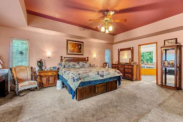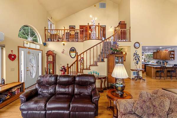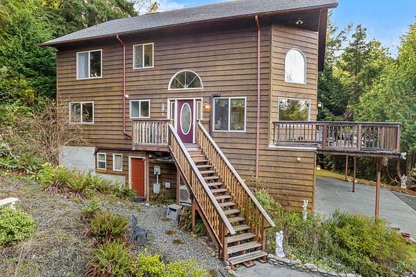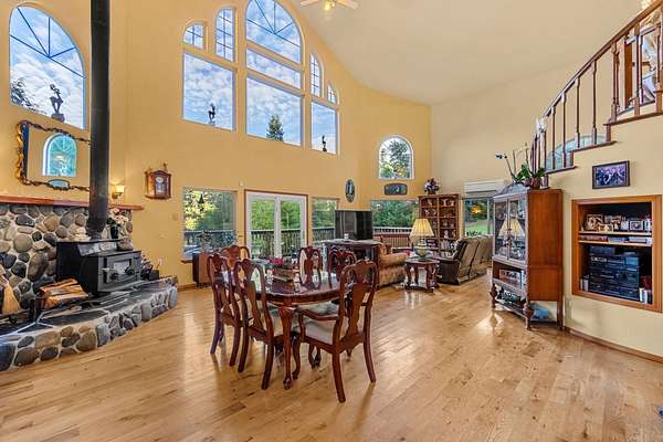 Welcome home to your private retreat. Properties like this make you never want to leave. Set on 4 serene, wooded acres, this inviting 3-bedroom, 3-bath home offers the perfect blend of comfort, space, and natural beauty. Step inside and take in the soaring cathedral ceilings and the stunning floor-to-ceiling picture windows that frame the peaceful forest surroundings. The living room features a beautiful rock fireplace and flows effortlessly into a spacious, welcoming kitchen—ideal for gatherings and everyday living. Beautiful oak floors and a wrap-around staircase greet you as you enter, leading you to the impressive primary suite upstairs. At the top of the stairs, a cozy lookout offers views of both the outdoors and the living area below. French doors open to the expansive primary suite, which encompasses the entire top floor. Here you’ll find a generous bathroom with double sinks, a walk-in shower, and a relaxing jetted soaking tub, along with a massive walk-in closet. The second floor offers a large bathroom with a charming claw-foot soaking tub, a comfortable guest bedroom, and a spacious laundry room. The lower level features a junior suite complete with its own bathroom and a sitting area that could easily serve as an office. Outside, the amenities are just as impressive. In addition to the attached 3-car garage, there is a 1,200 sq. ft. shop—perfect for projects, storage, or hobbies. RV hookups are located next to the shop, with additional RV hookups near the home. A broad wrap-around balcony provides plenty of outdoor living space to relax and take in the tranquil setting. Located on the peaceful outskirts of Hiouchi, this home offers privacy, comfort, and the beauty of nature—all just minutes from town.