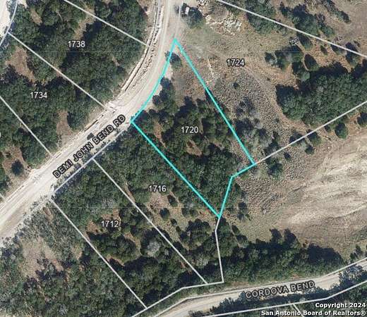 Est $1,291/moNestled in the serene Hill Country, 1720 Demi John Bend Road in Canyon Lake, TX, offers an exceptional opportunity to build your dream home. This 1.65-acre residential lot is located in the desirable Paradise on the Guadalupe community, known for its tranquil atmosphere and scenic surroundings. Approximately 267 feet of frontage and 325 feet in depth, this lot is level with mature hardwood trees, partially cleared for easy development and has electricity and water available on-site; septic system required. Whether you're looking to build a permanent residence or a vacation retreat, this lot offers the perfect blend of natural beauty and community amenities.