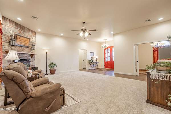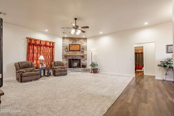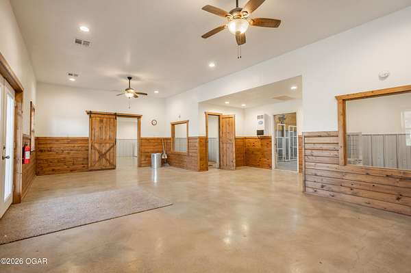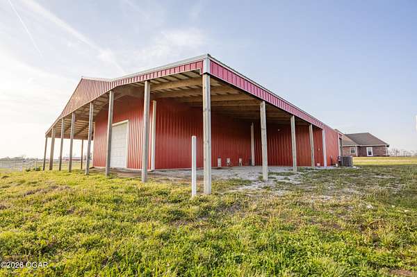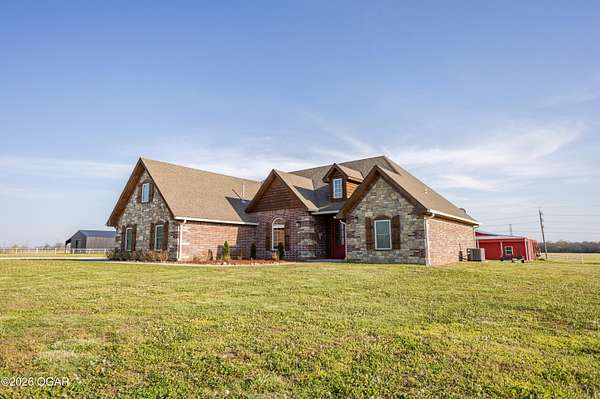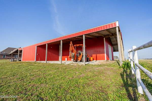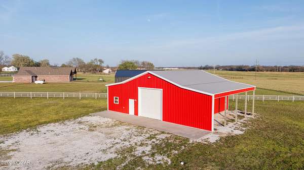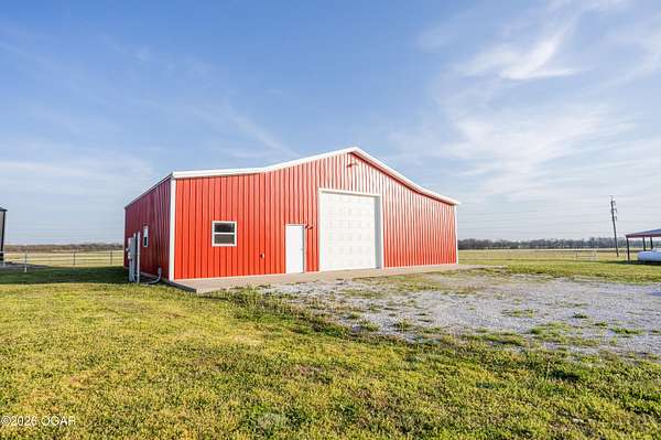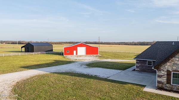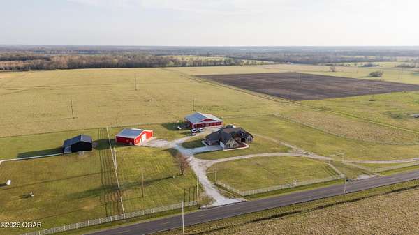 This exceptional 130 +/- Jasper County farm offers the perfect blend of productivity, functionality, and country living just minutes from town. Fully fenced and cross-fenced, the farm is ideally set up for efficient livestock management and features primarily Class II and III soils, including highly desirable Newtonia and Maplegrove silt loams. Whether your operation focuses on grazing, hay production, or row cropping, this property is well-equipped to perform. The acreage is currently established in Novel and Texoma fescue, providing a strong forage base, and includes five strategically placed cattle waterers enrolled in the NRCS watering program. At the heart of the property sits a beautifully designed 3 bed, 2 bath custom brick home offering 2,543 square feet of living space. This well-built home is loaded with extra features and designed for comfort, making it an ideal primary residence or headquarters for your farming operation. The list of extras includes: post tension foundation, extra insulation for maximum heating/cooling efficiency, custom cabinetry with soft close drawers, a dedicated canning/bonus room, gas cooking stove, pellet stove fireplace, beautiful back patio area, a continuous-pressure water system, water/electric at the main gate, and more! The improvements on this farm truly set it apart. A 56' x 70' climate-controlled building, previously operated as a dog kennel business, provides incredible versatility for a variety of uses--whether continuing a business venture, workshop space, or specialty livestock operation. Additionally, a 42' x 40' insulated shop with an attached 12' x 40' lean-to offers ample room for equipment storage or maintenance. Situated to the south of the property is a picturesque 1-acre stocked pond complete with a beautiful arched bridge. Around the pond is a park-like area that has hosted many gatherings for folks to enjoy its peaceful serenity. Throwing a line in the pond to catch bass is a must! However, the property also offers additional recreational opportunities, with strong populations of deer and turkey. Conveniently located less than a mile from Carthage and under 7 miles from Joplin Regional Stockyards, this property combines the tranquility of rural living with quick access to essential amenities and markets. Whether you're looking to expand an agricultural operation, start a business, or simply enjoy a high-quality rural lifestyle, this property is a rare find.