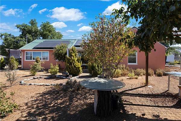 Welcome to your own little paradise. This property has it all. Home has been modernized and polished over the years. From newly built closets in rooms, remodeled bathroom, expanded porch area, new paint inside and out, new light fixtures and ceiling fans inside house, new lighting on the exterior of home and updated electrical inside and out of home. The exterior of the property got a make over to. New metal roof installed a couple years ago, a new asphalt driveway was put in, the entire 4 acre property was fenced, gates on both sides of the property were placed for complete encirclement and a 12 panel owned solar system was installed. Now lets talk about the landscaping. The owners love gardening and you can see it from away. The property was planted with a variety of trees, flowers, seasonal vegetables, fruits, table grapes, cactus and herbs/shrubs. Lovely raised beds and the entire landscaping grounds have been fully automated with a watering system to make it a breeze to water the unique vegetation of this property in minutes. Water on this property is supplied by its own well and a connection to city water too. There is a detached 2 car garage and small living quarters that are in need of some repairs.