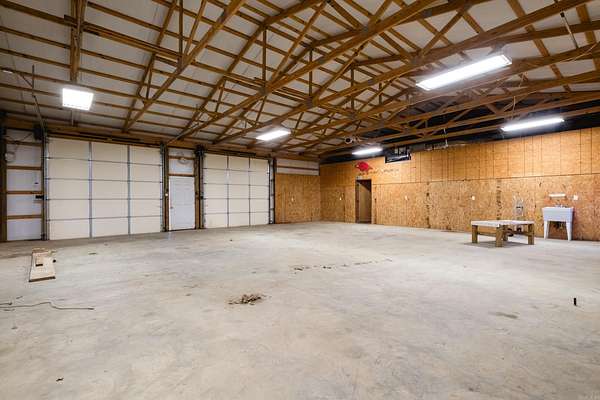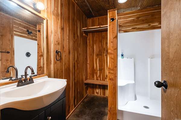 Unique property on approximately 4.5 acres with woods and garden areas where the home blends beautifully with the natural surroundings. The main house features scored and stained concrete floors in the main living areas, carpeted bedrooms, fresh paint throughout, and comfortable spaces designed for easy living. The great room centers around a striking stone fireplace with built ins and wood beam ceiling detail. The fantastic kitchen and living areas open to a large outdoor living space with vaulted wood ceiling, stone fireplace and outdoor kitchen with granite counters, sink and refrigerator, overlooking a creek and acreage beyond. The floor plan offers the primary suite and a guest suite on the main level along with cedar closets. Upstairs are two additional guest bedrooms, bonus/media room and walk in attic storage. The property also includes an impressive 2400 SF shop that could accommodate 4 to 6 vehicles + separate 800 SF apartment with kitchenette, bedroom and bath. Additional covered equipment storage provides room for vehicles, equipment and projects. Come see!