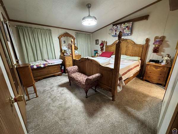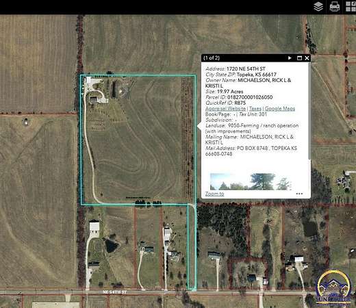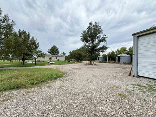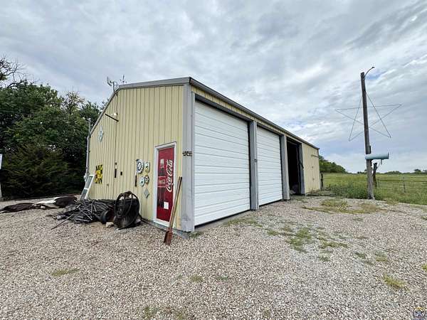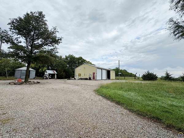 A rare opportunity awaits to own a unique 20-acre property in the desirable Seaman school district, offering gorgeous, panoramic views! This charming 3-bedroom, 2-bathroom home features a main-floor primary bedroom with an en suite bathroom conveniently connected to the laundry room. The living room boasts a cozy wood-burning stove, and the property includes an unfinished basement. Enjoy the outdoors from the covered porch, which overlooks numerous recently planted trees. The expansive outdoor amenities include a 30x50 outbuilding with four bays and a gravel floor, providing ample space for equipment and recreational vehicles. Additionally, the property features two grain bins, a chicken coop, a circle drive in the back, and plenty of parking space. This unique property is also a K-State Forestry registered hardwood tree farm and pecan plantation.