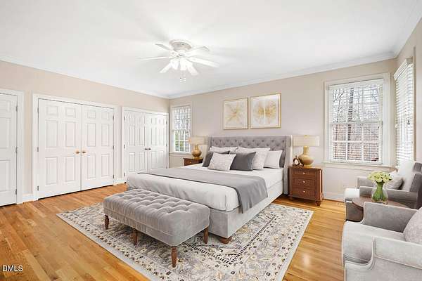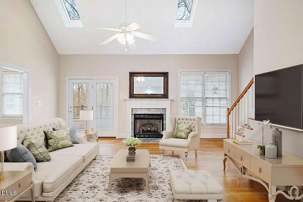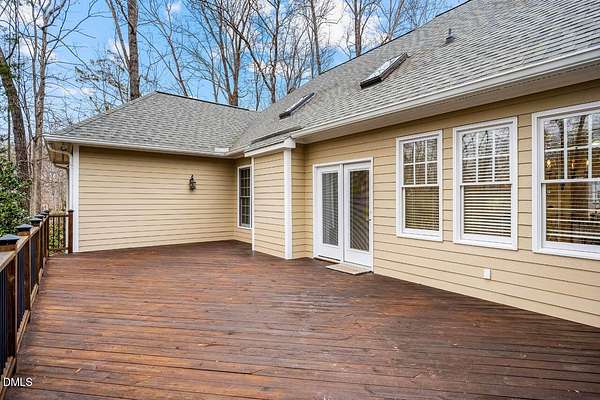 Gracious custom ranch built by Steve Kelly on lush 1.57-acre cul-de-sac lot in coveted Fox Hill Farms. From vaulted central living room with skylights & gas FP to the rich hardwood floors, every detail reflects warmth & timeless appeal. The primary suite is complemented by a recently renovated bath featuring an oversized, level-entry shower. A convenient home office provides a private, quiet space for work or study. Split bedrooms ensure privacy, while the oversized deck invites you to unwind & take in the wide variety of plants & shrubs that bloom from Spring til Fall. Back yard is fully fenced to exclude deer & rabbits. The floored walk-up attic affords abundant storage & expansion possibilities. Practical enhancements include a 7-year-young roof, sealed crawlspace, whole-house dehumidifier, central vacuum with crumb sweeper, climate-resilient garage fridge, year-old washer, and a whole-house generator. Just 10 mins from downtown Hillsborough, with easy highway access, this home combines the tranquility of a cul-de-sac setting with all the conveniences of modern life -- truly a place to live well, grow gardens, work comfortably from home, & savor every season.