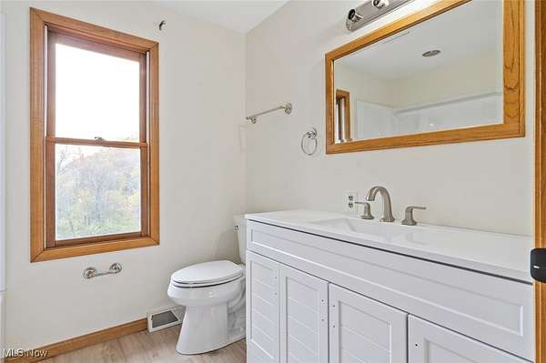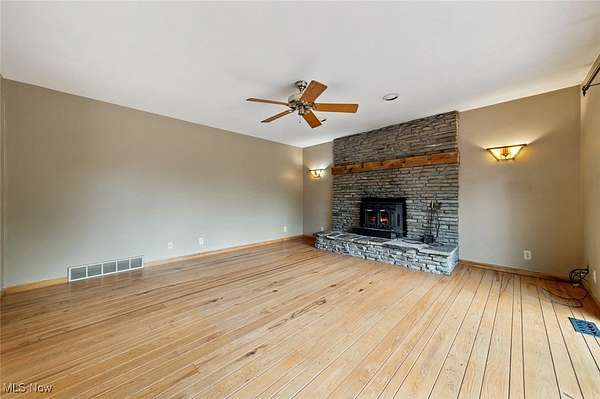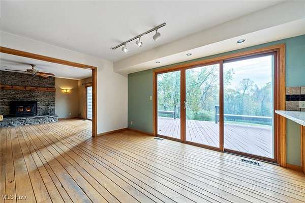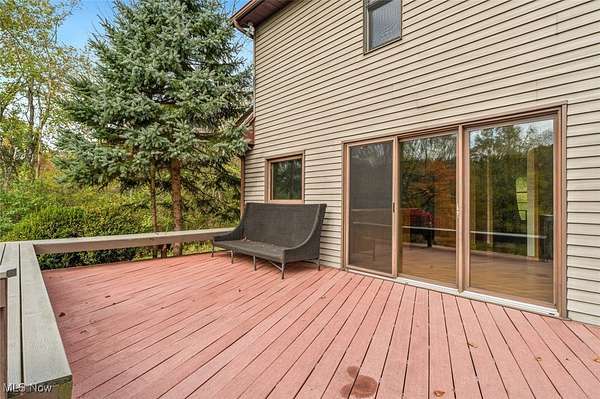 Discover an exceptional rental opportunity on a beautiful 2.95-acre private property, perfectly situated just minutes from the freeway and close to Cuyahoga Valley National Park's biking and hiking trails. This home blends comfort, privacy, and convenience. Step inside to a gourmet kitchen featuring granite countertops, hickory cabinets, and gleaming hickory hardwood floors that flow into the family room. Natural light pours through large windows, creating a bright, airy atmosphere throughout. Enjoy outdoor living on the spacious 40' x 14' composite deck overlooking the expansive backyard, or relax on the inviting 40' x 8' front porch. Upstairs, a 26' x 8' bonus recreation room offers endless flexibility - perfect for entertaining, a playroom, or a creative studio. Lawn care is included in the rent, so you can enjoy a low-maintenance lifestyle. Tenant is responsible for utilities, maintenance of the beds and snow removal. Sorry, no pets or smoking permitted. One-month security deposit required.