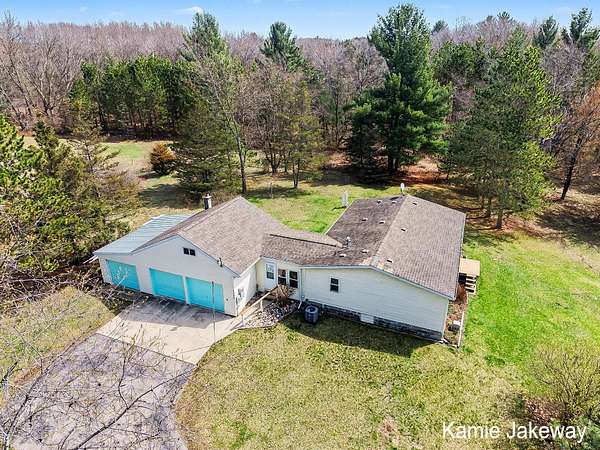 Well-maintained ranch on 3 private acres in the Central Montcalm School District. This 2 bedroom, 2 full bath home offers comfortable main floor living with great natural light, plus a bonus room that could easily be converted into a 3rd bedroom. The attached 3 stall garage provides plenty of space for vehicles, hobbies, and storage, with additional storage above. Whole home generator included for added peace of mind. Situated on a paved road with a paved driveway for easy access. The setting is private and peaceful, with mature trees surrounding the home, established perennials, and space for a garden. Located just 15 minutes from Greenville for convenient access to shopping and dining while still enjoying country living.