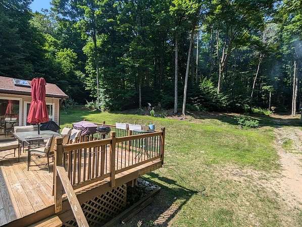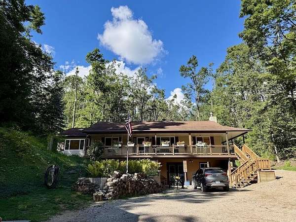 What a great peaceful environment and setting on this three bedroom and two bathroom well maintained home, sitting on a Beautiful Hardwood Rolling14.6 Acre parcel with trails through this property, Scenic and nicely landscaped, Walkout Finished basement, wrap around open and covered deck, woodstove plus gas stove in family room. Large spacious 2.5 car detached garage with storage area above with many options, plus smaller detached garage, and Storage shed. Property is close to snowmobile trails, Downhill Skiing and the Pigeon River State Forest. If you are looking for a well matained home on Beautiful Hardwooded Acreage look no further.