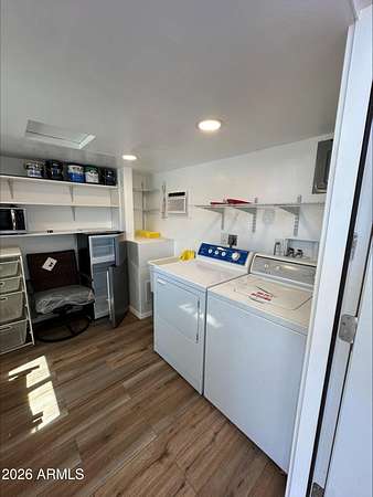 This spacious RV lot offers a 14'6'' wide open space, perfect for any RV size. The recently renovated shed includes a washer, dryer, and mini fridge, with hot and cold water line for outside ready for an outside kitchen area-a perfect blend of functionality and convenience. Enjoy some golf course views and take advantage of the partial awning for added shade. Located in a vibrant community that loves to celebrate the holidays, this lot is perfect for those looking for a seasonal retreat or a year-round home. Don't miss out on this incredible opportunity!