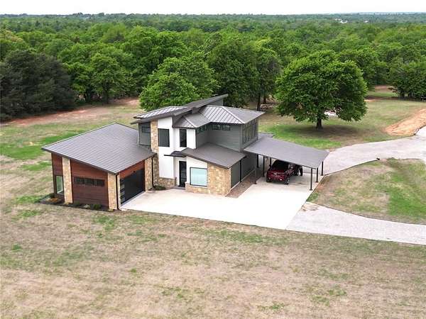 Welcome to the home of your dreams, this exceptional property delivers the perfect balance of luxury, craftsmanship, and peaceful country living. Set on 12 beautifully maintained acres in the highly sought-after Bethel area, you'll enjoy the serenity of a rural setting while remaining just minutes from Midwest City and Shawnee, along with access to an excellent school system. Built to uncompromising standards, this home showcases remarkable quality and thoughtful custom design throughout. Features include a standing seam metal roof, Pella custom triple low-E windows, a custom metal staircase, and a 3-zone variable HVAC heat pump system. The interior offers a dramatic 22-foot ceiling, high-end linear propane fireplace, premium appliances with double oven and stacked microwave, and custom tile work with a Schluter underlayment system. The main bathroom is a true retreat with a heated floor, Jetta tub, and upscale finishes. Additional highlights include leathered granite countertops, all-LED lighting, triple water filtration with softener, spray foam insulation throughout, and durable 2x6 exterior wall construction. Outside, enjoy a custom fire pit and expansive space to relax or entertain. The oversized two-car garage adds convenience, while the property's advanced features-such as a post-tension foundation and interactive camera system-provide peace of mind. The impressive 25x50 shop is equally well-appointed, featuring spray foam insulation, a Polyurea-coated floor, 200-amp service, a 1.5-ton mini split system, fireplace, tankless water heater, and a full bathroom with walk-in shower. A 30x30 concreate landing and 50-amp RV connection make it ideal for a variety of uses. Every detail of this property reflects superior construction and pride of ownershipoverbuilt" hardly does it justice. Schedule your private showing today.