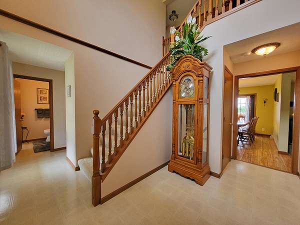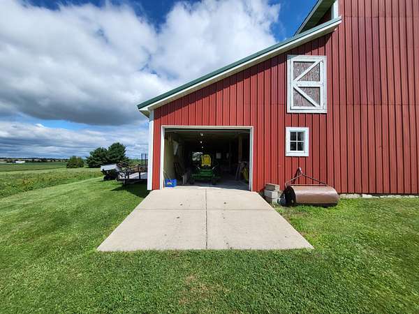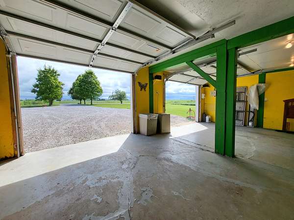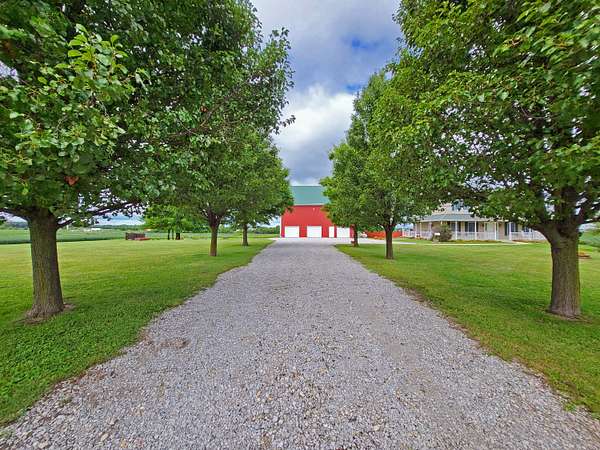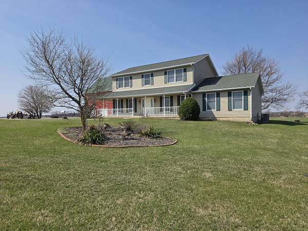 Situated on five acres, this 5 bed, 4 bath home on a full basement comes complete with a massive barn (1472 sq. ft.) large enough for 3+ cars, large rear deck out to the swimming pool, scenic views with mature trees in all directions, and much more. As you enter the home you are greeted with tall ceilings in the spacious foyer. On the main level you will find the kitchen with all appliances included, full size pantry, and counter seating for four. Adjacent to the kitchen you will find the dining room with access to the rear deck. The living room offers plenty of space for entertaining, while an additional great room in the front of the home lends an additional space for even more options to customize your space. Laundry with washer and dryer included as well as the primary bedroom can also be found on the main level. The primary bedroom is spacious with dual windows, ceiling fan, walk-in closet, and large ensuite bathroom including dual sink vanity, walk-in shower, whirlpool tub, and linen closet. Upstairs you will find four additional bedrooms and two full baths. The full-size basement offers plenty of storage space and includes a two-year-old hot water heater, three-year-old furnace, OSBY reverse osmosis water system, and a hardwired security system. The barn includes three garage doors, a second floor with an abundance of storage space, a rear storage area complete with multiple doors and garage door perfect for lawnmower access. The barn also features steel siding, metal roof, and plenty of windows. The large driveway can accommodate many vehicles with the additional parking area in the front. Exterior features include a wraparound porch and large rear deck with pergola with above ground swimming pool fully fenced in with multiple gates.