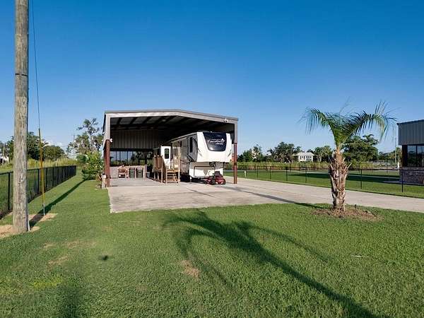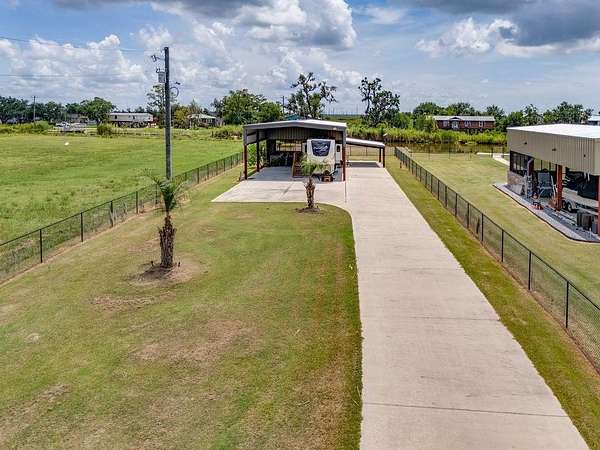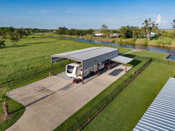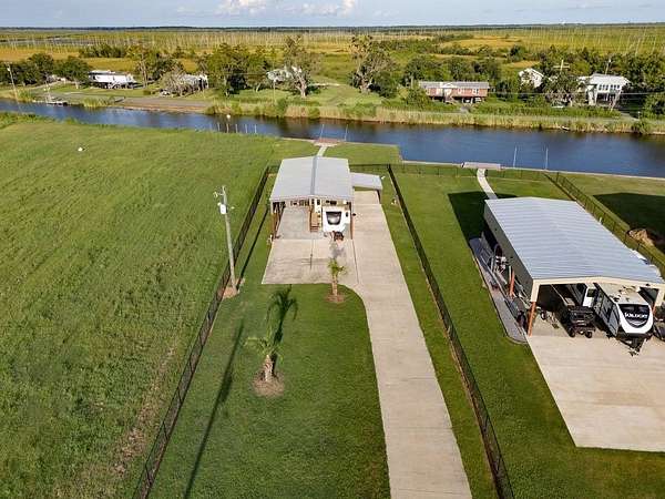 YOUR PIECE OF PARADISE !! You will want to escape every weekend to this beautiful area in Dularge. About a 15 minute ride from the Industrial Canal bridge. This property has 3 CAMPER HOOK UPS, BULKHEAD, a large RV shelter, concrete driveway, water and electricity on the bulkhead / dock area, an automatic electric gate with wrought iron fencing, a beautiful enclosed screened in room/outside kitchen with built in ("Bull Commercial appliances" included) grill, cooktop (appliances included in price!!) and sink, 10' island with 3cm granite counter tops for entertainment etc. Main structure 30x60x16 tall, additional awning 15 x 20 engineered and manufactured by "Custom Corrugated" & 30x 20 screened in room surrounded by a double-brick parapet wall.. Can hold 3 or more campers. Bring the whole family!! Done in the finest of taste, this property is a must see ! Priced to move, schedule a showing today. (note: tax assessors site does not have mapping correct) Near "Fishermans Retreat" and boat launch / store in Dularge by Falgout Canal and a few miles from "Southern Comfort" camps in Dulac. contact agent for any questions. (all info contained within to be verified by buyer)