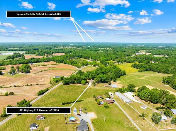 FROM CHARLOTTE: US-74 E/E Independence Blvd/E Independence Fwy toward Monroe. Take exit 253B for I-485 N toward Outer/Greensboro. Use the left lane to take the ramp onto I-485/I-485 Outer. Take exit 44 for NC-218 toward Mint Hill. Turn right onto NC-218 E/Fairview Rd. Continue to follow NC-218 E for approximately 3 miles. At the traffic circle, continue straight onto NC-218. Cross over Hwy 601/Concord Hwy. Property will be on the left at 1721 E Highway 218.