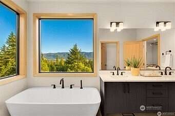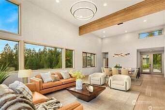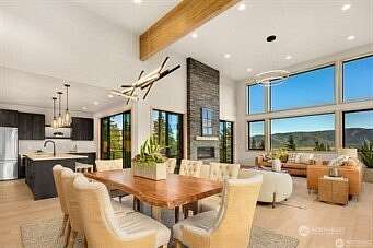 Come home to your luxury mountain escape. This new home on 1.9 ac in coveted Skyline Ridge was built for those who seek privacy, beauty, recreation, and an elevated mountain lifestyle. Skyline Ridge is the only community of its kind in the Cle Elum area, offering views, estate-sized homesites, and 200+ acres of private trails and open space. At the heart of the community is The Lodge, a resort-style hub with a pool, pickleball courts, and expansive lawns—where memories are made and neighbors become friends. Featuring southern exposure and generous windows throughout, you’ll be bathed in sunlight with views of Peoh Point from almost every room. Step out of the vaulted great room with exposed beams and a striking stone fireplace through dual doors to a covered patio for true indoor-outdoor living—a peaceful coffee before a hike, or a lively al fresco dinner with friends, all framed by the view. Thoughtful tree placement and community design ensure that both your privacy and your views will always be preserved. Hosting here will feel as natural as the setting itself. The chef’s kitchen, with a six-burner gas range and generous quartz countertops, is designed for both holidays and weekends at home, while bonus living spaces offer room to spread out or reconnect. Spa-inspired bathrooms add a sense of comfort and retreat. With spaces designed for both celebration and quiet restoration, this home is an escape, a gathering place, and a gateway to the best of mountain living.