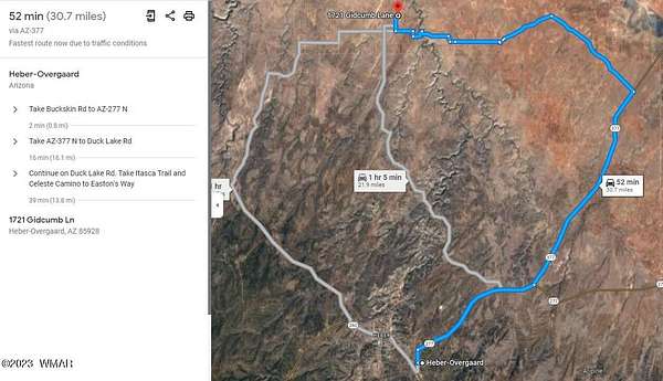 From AZ-377 S From Duck Lake Rd Turn left to stay on Duck Lake Rd Slight left, Continue straight, Turn Rt. onto Cayote Trail, Turn left onto Itasca Trail Continue & Turn left onto Celeste Camino Celeste Camino turns left and becomes Dead Horse Rd Turn right onto Scroggins Way Turn left onto Buffington Hill Rd Turn right at the 3rd cross street onto Easton's Way Location is 0.7 mi. away