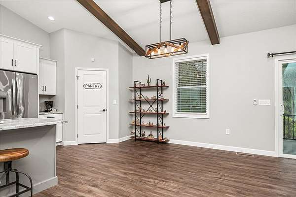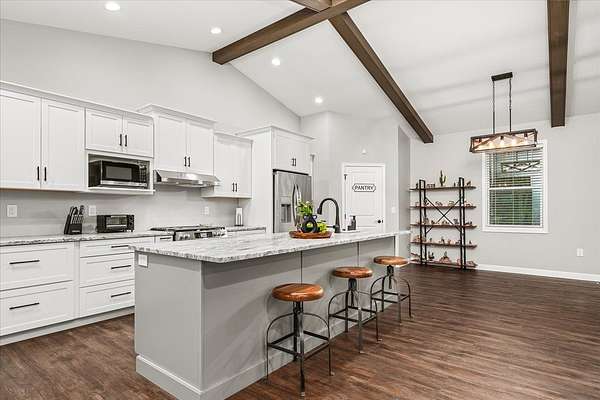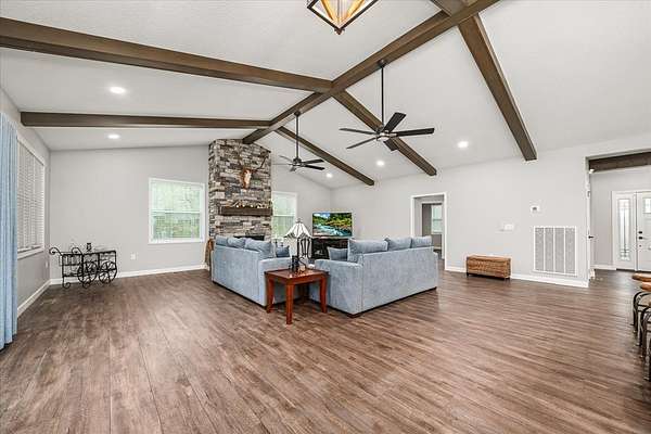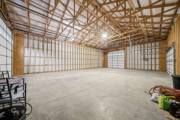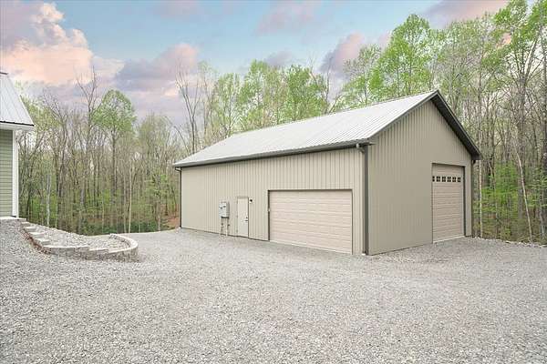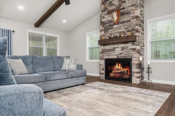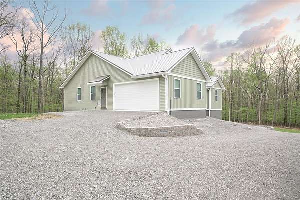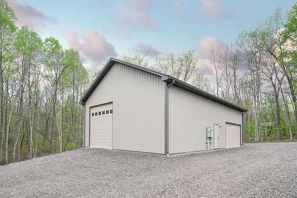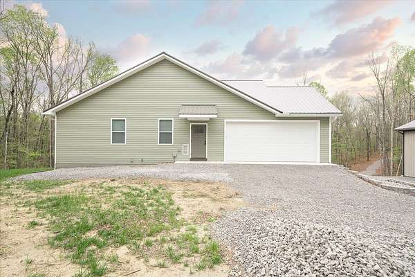 Price Reduced! This stunning property on 8+ acres now offers even greater value. With its modern construction completed in 2024, every corner of this home reflects thoughtful design & quality craftsmanship. The winding driveway guides you to the spacious 2,078 sq ft residence, along with a 32x48' outbuilding perfect for storing your RV or other toys, complete with a 3-bay and drive-through door. An inviting foyer welcomes you into the expansive open living area, highlighted by ceiling beams and a great room featuring a stunning stone gas fireplace. This remarkable property has numerous features, including a spacious kitchen island w/stylish leather finish counters, soft-close cabinetry, and pantry. It is filled with abundant natural light and has a sliding door that opens to a large covered composite deck. Additional highlights include a dog washing station, an attached 506-square-foot garage, an encapsulated crawl space, and gutter guards. Buyer to verify info prior to making offer.