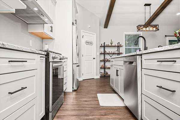 - Dishwasher, Gas Oven, Gas Range, Range Hood, Refrigerator