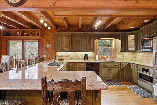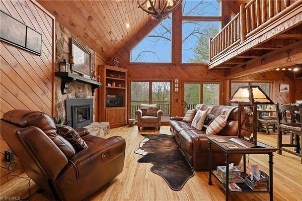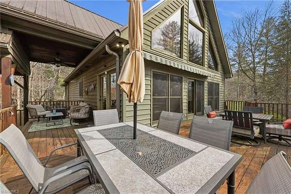 Beautiful Craftsman-style home located inside the gated community of Leatherwood Mountains. This 2-bedroom home with an above-garage apartment offers charm, space, and excellent investment potential. Eligible for the short-term vacation rental program and able to sleep up to 12 guests comfortably, this property is being sold furnished and could serve as a turnkey income-producing opportunity. The open kitchen and living area provide a welcoming space to gather, while multiple covered and open decks offer great outdoor living with long-range views. Enjoy the fenced outdoor area with fire feature and custom garden boxes. The home also features granite countertops, gas range, oversized refrigerator, custom cabinetry, plantation shutters, and a spacious bathroom with oversized shower and garden tub. Located just one mile from the front gate with access to Leatherwood amenities including pool, tennis, pickleball, pavilion, and nearly 50 miles of horseback and hiking trails.