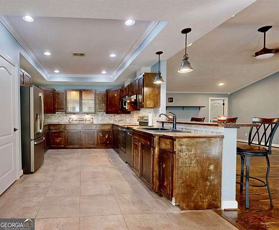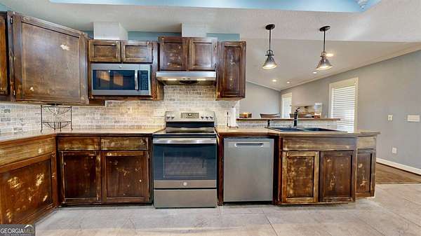 Charming 4 Bedroom, 2 Bath Home with Split Floor Plan and Welcoming Front Porch Step into this beautifully styled 4-bedroom, 2-bath home where warmth and character meet functionality. The front porch makes a lasting impression-perfect for rocking chairs, seasonal decor, or just sitting and enjoying the view. Framed with rustic wood details, brick steps, and stacked stone accents, this entry sets the tone for the charm you'll find inside. The home features a split floor plan with a central foyer that opens to a versatile front room ideal for a formal dining space, home office, or den. The spacious living room offers a cozy brick gas fireplace and flows into a light-filled breakfast area with views of the backyard. The primary suite is thoughtfully designed with tray ceilings, a generous walk-in closet, and a spa-like tiled bathroom complete with double vanity, water closet, jacuzzi soaking tub, and a walk-in shower. Additional features include a large laundry/mudroom with storage and a utility sink, and three more comfortable bedrooms with shared hall bath access. Highlights: * Inviting covered front porch with brick and wood accents * Split floor plan with flexible front room * Brick gas fireplace and lots of natural light * Spacious kitchen and breakfast nook * Large laundry/mudroom with sink * Primary suite with luxurious bath and walk-in closet This home offers both style and function with spaces to relax, work, and gather - inside and out!