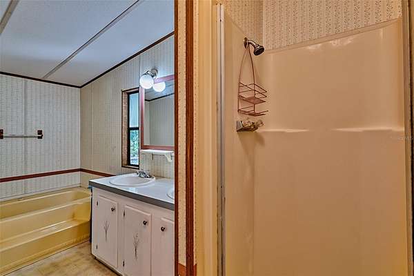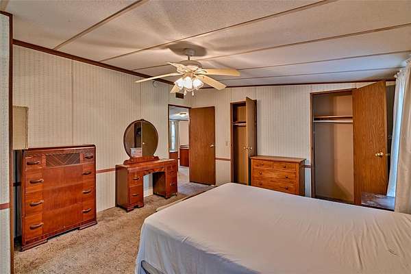 The spacious primary suite includes a large walk-in closet and a soothing garden tub, perfect for unwinding after a long day. The open living and dining areas provide plenty of room for family gatherings or entertaining guests, while large windows fill the home with natural light and offer views of the surrounding property.
