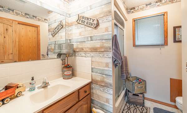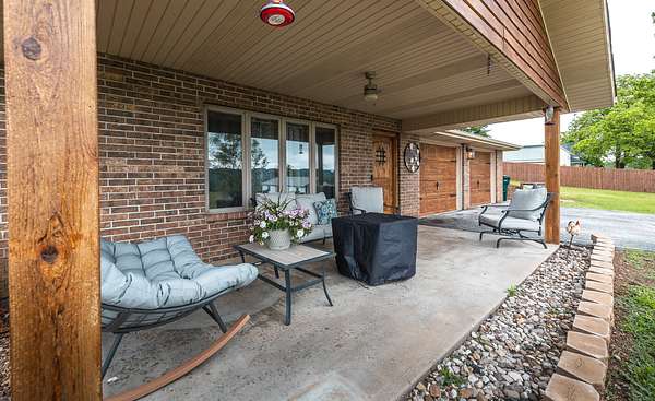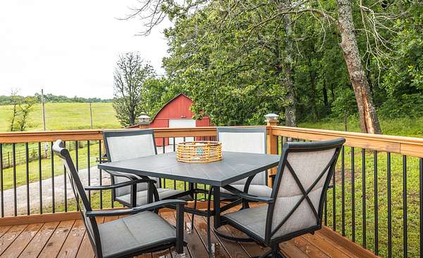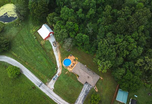 Charming 2BR/2BA Berm-Style Brick Home on 8+ Wooded Acres with Pool and Barn Don't miss this beautifully remodeled 2-bedroom, 2-bath berm-style brick home situated on approximately 8 mostly wooded acres, offering privacy, comfort, and space to entertain. This home features over 2,100 sq ft of living space, including a spacious primary suite with a fully updated bath showcasing dual vanities, large soaking tub and a large walk-in shower. The open-concept layout connects the living, dining, and kitchen areas for easy flow. The kitchen is equipped with modern finishes and automatic under-cabinet lighting, adding both function and ambiance. Enjoy panoramic views from the large covered front patio, or entertain guests on the multi-level deck that surrounds a 24x54 round above-ground pool. The attached 2-car garage adds convenience, while a large barn with lean-to offers ample storage for equipment, tools, or recreational toys. Property Features: 2 Bedrooms / 2 Bathrooms Approx. 2,100+ Sq Ft Remodeled interior with modern updates Primary bath with dual vanities & large walk-in shower Kitchen with automatic under-cabinet lighting Covered front patio with scenic views Multi-level deck surrounding 24x54 pool 2-car attached garage Large barn with lean-to for additional storage Approx. 8 mostly wooded acres Move-in ready and perfect for those seeking space, comfort, and outdoor enjoyment.