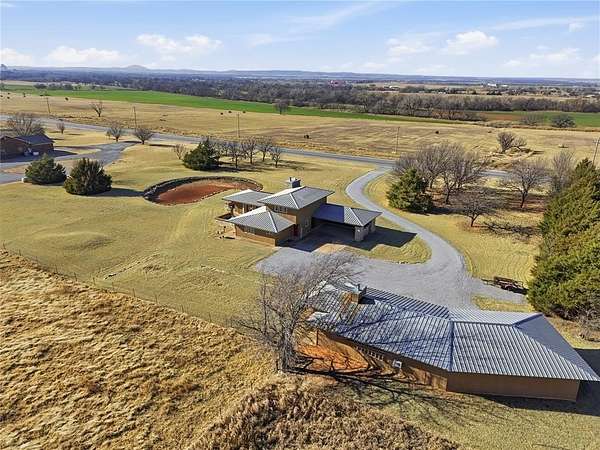 Welcome to this one-of-a-kind custom home in Apache, OK, where Southwest architecture meets wide-open Oklahoma views. Nestled on 2.6 acres, this property offers privacy, space, and character you can't replicate with new construction.