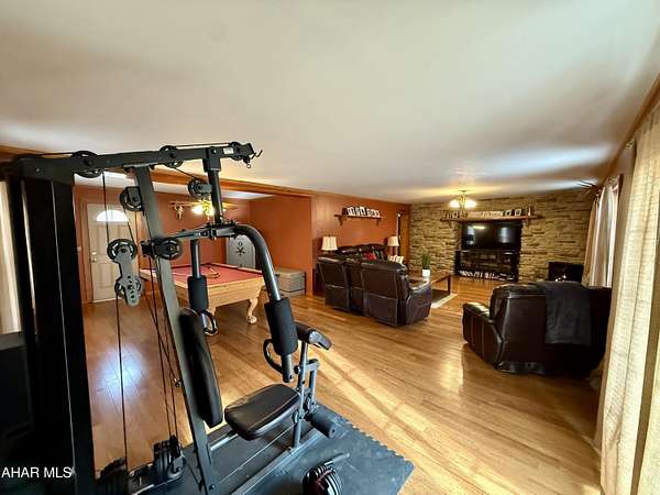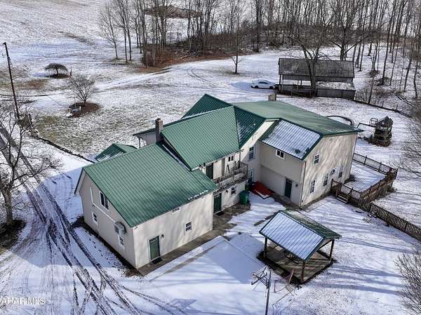 Stunning estate living on nearly 12 acres! This exceptional property offers space, style, and versatility both inside and out. The main floor welcomes you with a 2-car attached garage leading into a convenient mudroom, the kitchen featuring tile backsplash, stainless steel appliances, and a large butcher block island with storage, plus a half bath with laundry. Enjoy entertaining in the formal dining room, working from the private office, or relaxing in the spacious living room with stone accent entertainment wall and gas fireplace. Sliding doors open to a large deck overlooking a fenced yard. The second-floor features five generously sized bedrooms, including an impressive primary suite with two walk-in closets and a spa-like bath complete with a ceramic tile walk-in shower with dual shower heads, a large vanity, and soaker tub. An additional full bath, a large recreation room, with direct access to a second-floor balcony and a bonus room currently used for storage complete the level. Hardwood floors, doors and trim throughout add warmth and character. Outdoors is where this property truly shines-enjoy a covered pavilion, multiple cement patios including a basketball area, a detached 2.5-car garage with an upper-level workshop, a 32x46 multi-level barn, and several additional structures perfect for equipment storage or housing a large RV. List of updates available. This one-of-a-kind property offers endless possibilities-schedule your private showing today!